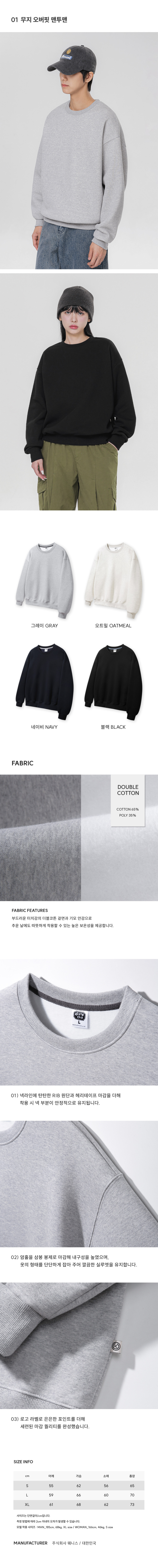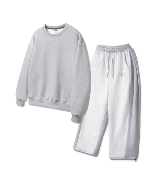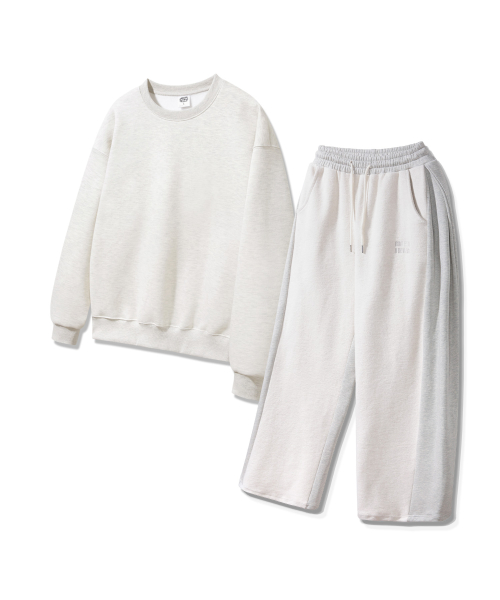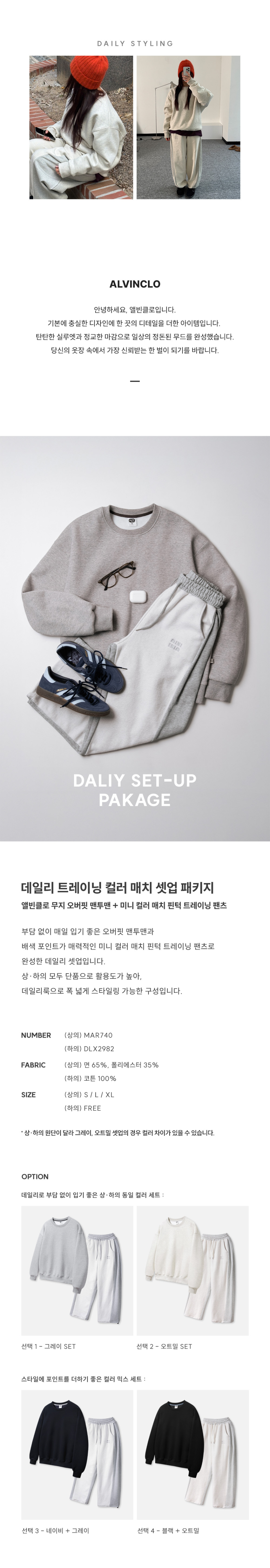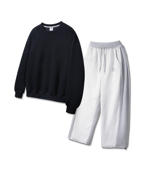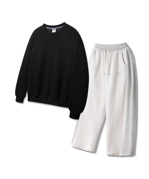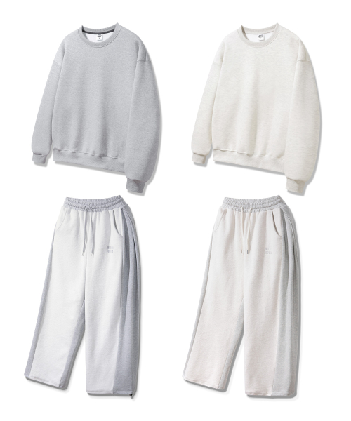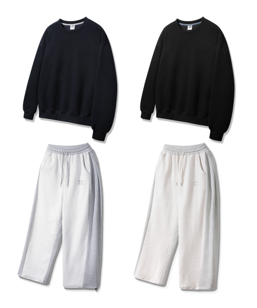 [SET]무지 오버핏 맨투맨 핀턱 트레이닝 팬츠 셋업