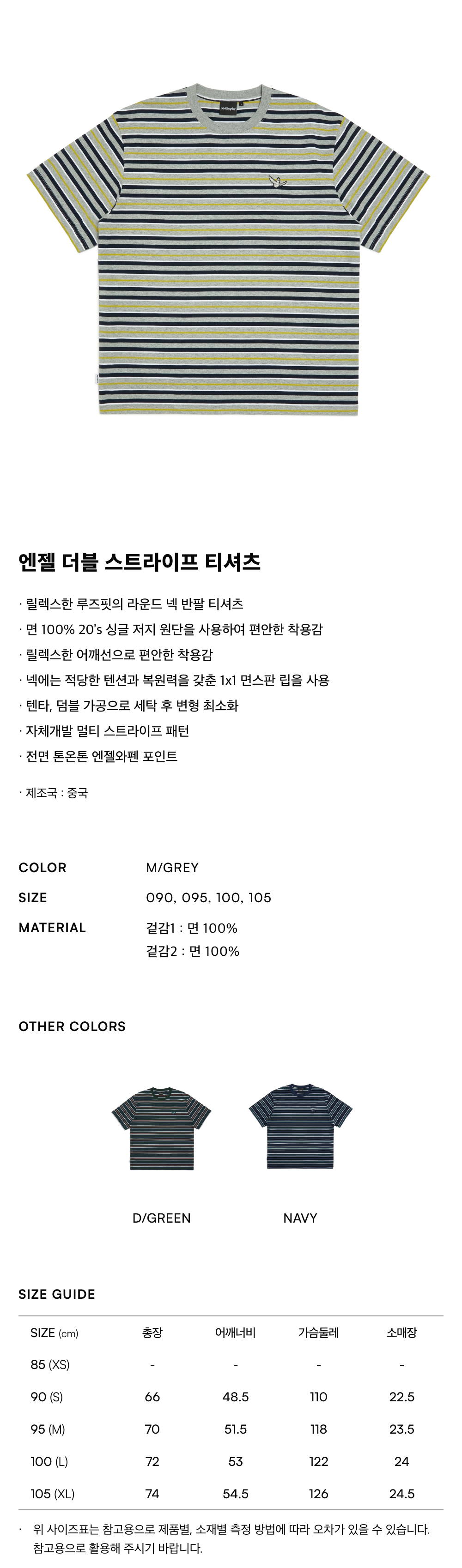 엔젤 더블 스트라이프 티셔츠 - M/GREY