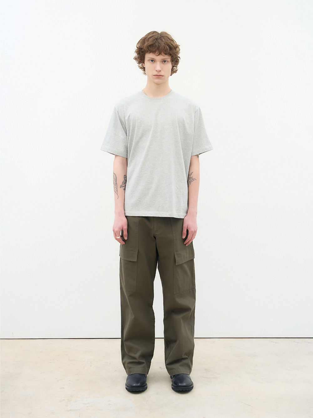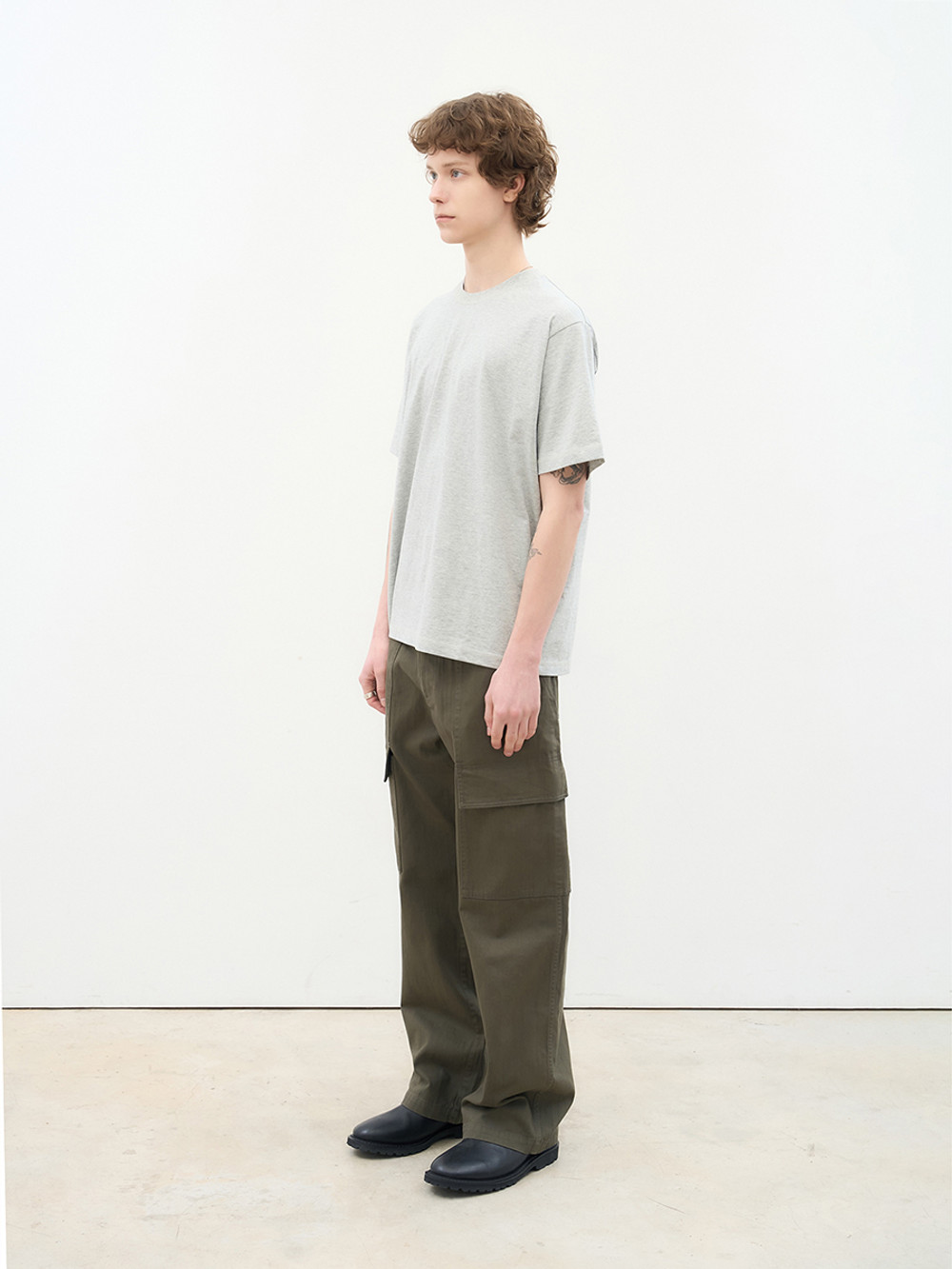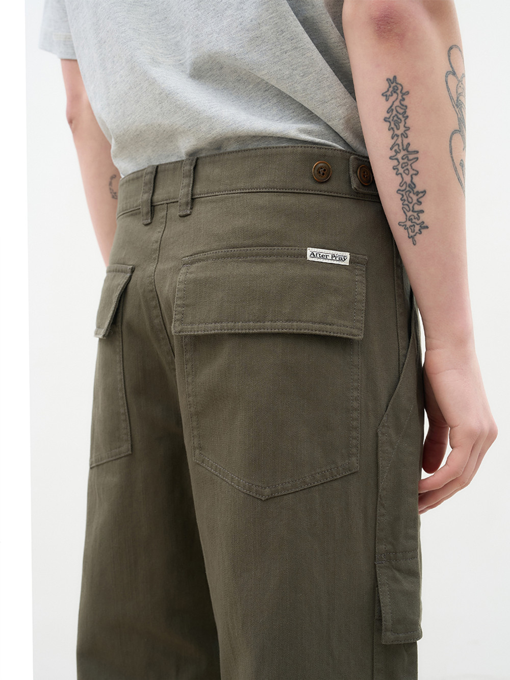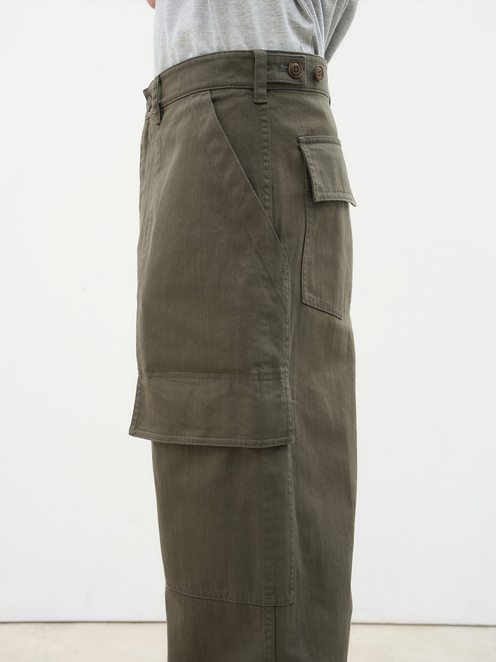 위트 있는 포켓 디테일로 분위기를 전환한 퍼티그 카고 팬츠. 은은한 요철감과 빗줄기가 흐르는 듯한 독창적인 텍스처가 살아 있는 16수 슬럽 트윌 코튼 소재. 이중으로 설계된 퍼티그 포켓 구성으로 실용성과 위트를 동시에 강조한 정교한 디테일. 레귤러 핏과 자연스러운 워싱이 어우러져 다양한 스타일에 유연하게 매칭되는 입체적인 실루엣. 밀리터리의 본질적인 아카이브를 현대적인 감성으로 재해석한 아이템.