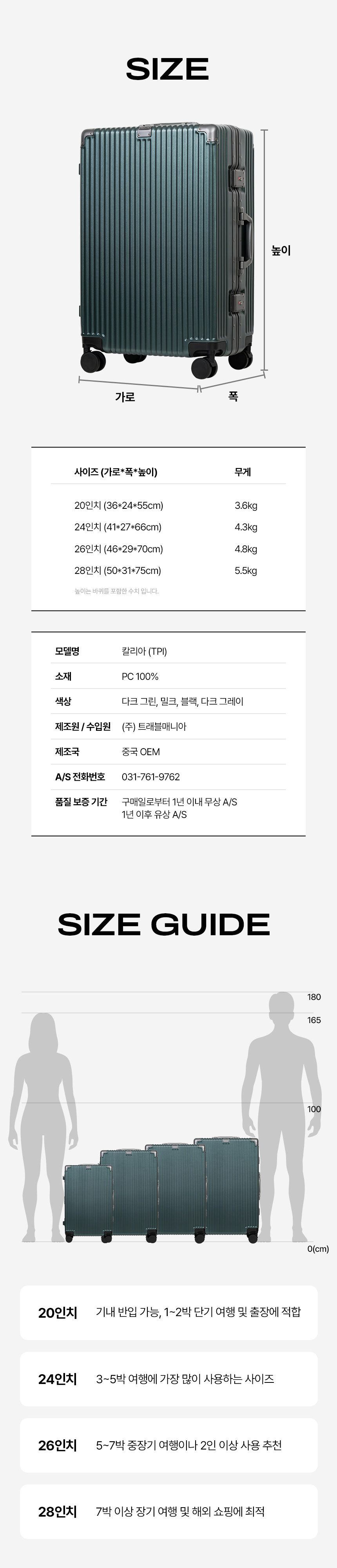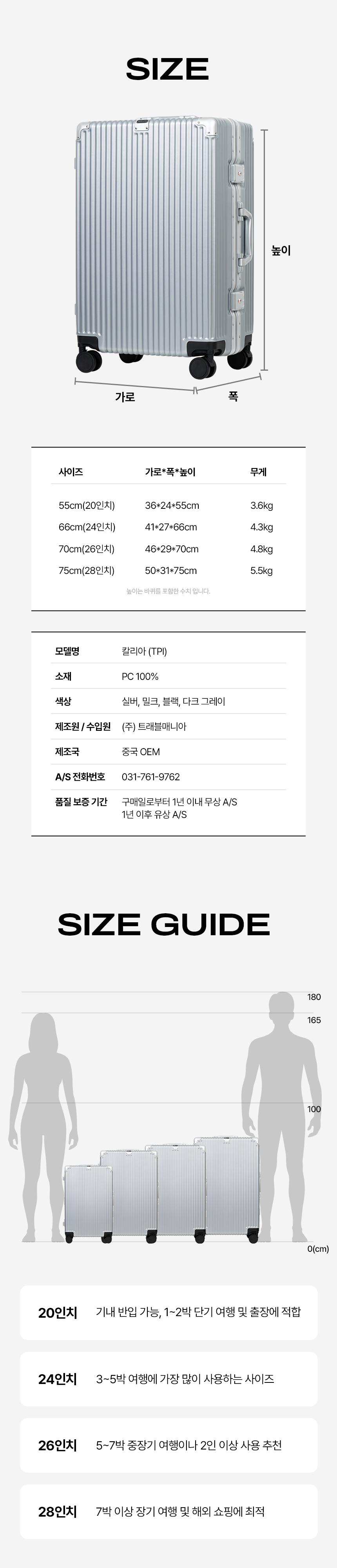 TPL 노트북 수납 18 20 24 28인치 폴리카보네이트 여행 기내용 수화물 캐리어