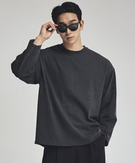 피그먼트 오버핏 롱 슬리브 티셔츠 차콜