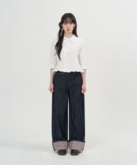 W 체크 포인트 데님 팬츠 (INDIGO)
