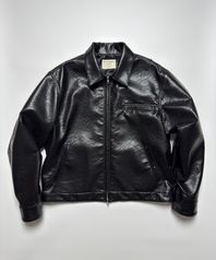 DIRTY FAUX LEATHER WORK JACKET - BLACK