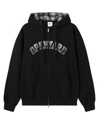 FLANNEL CHECK LOGO HOODIE ZIP UP - BLACK