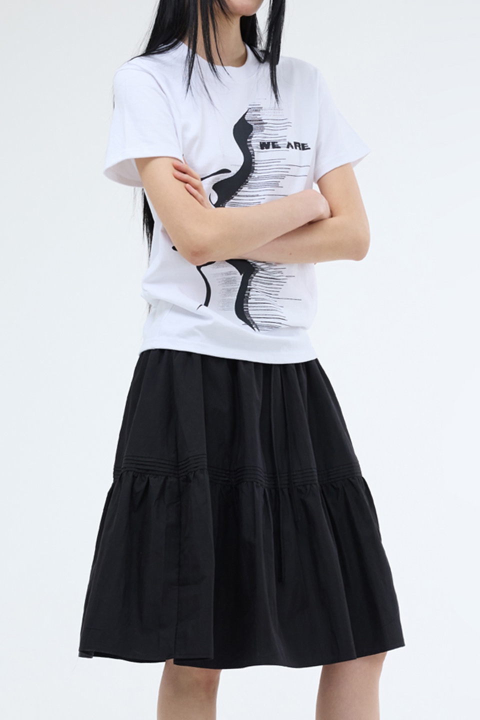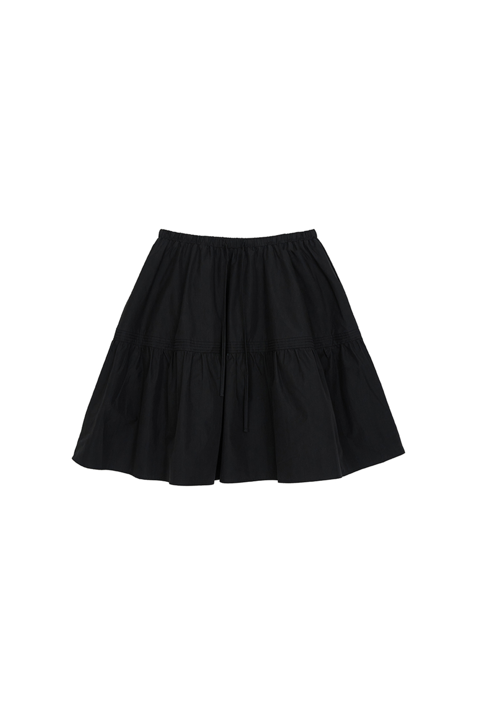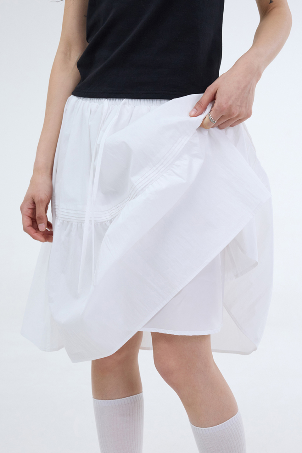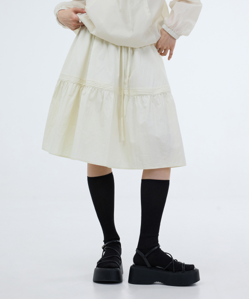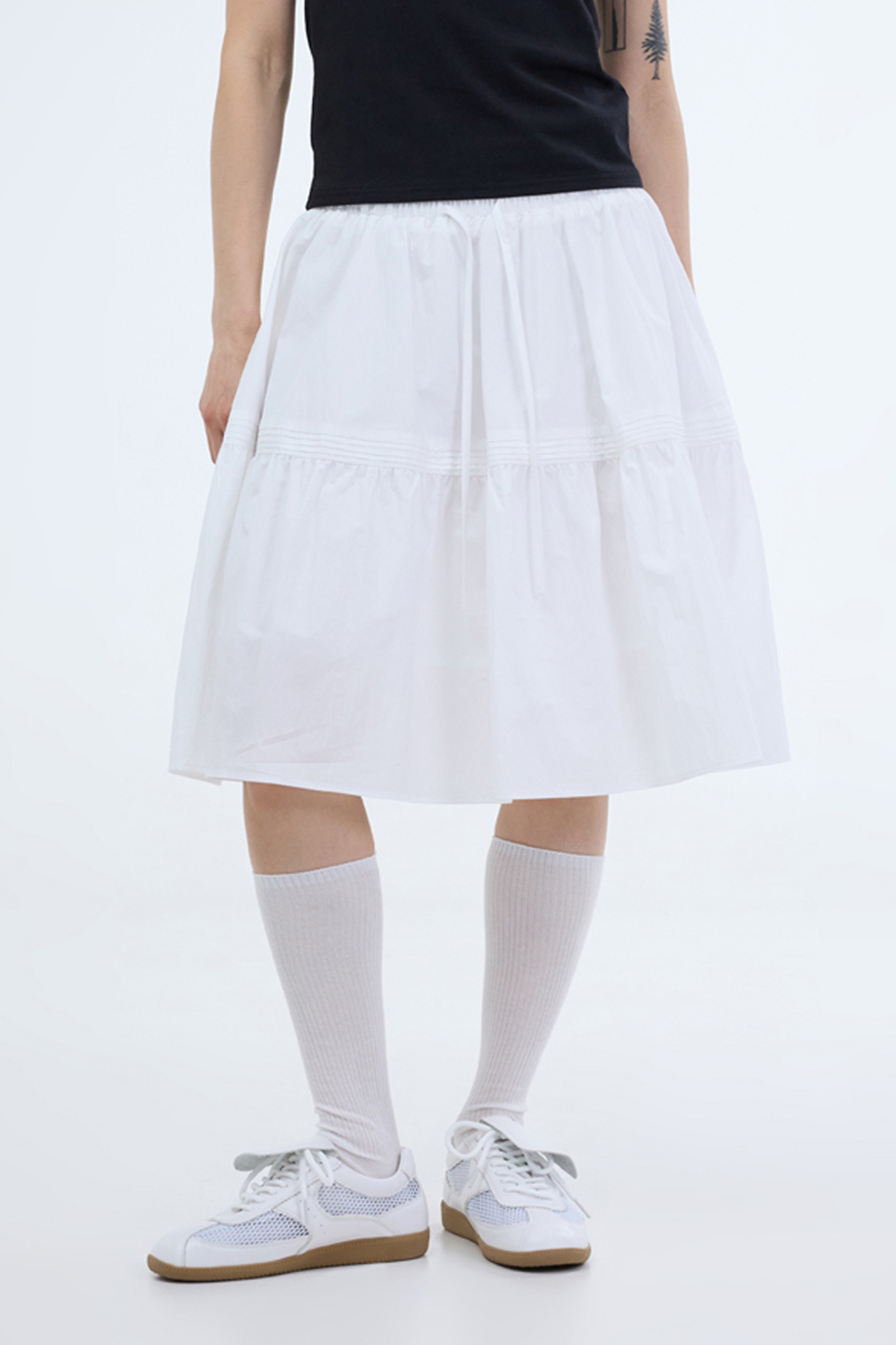 PINTUCK FLARE MID LENGTH SKIRT-4COLOR