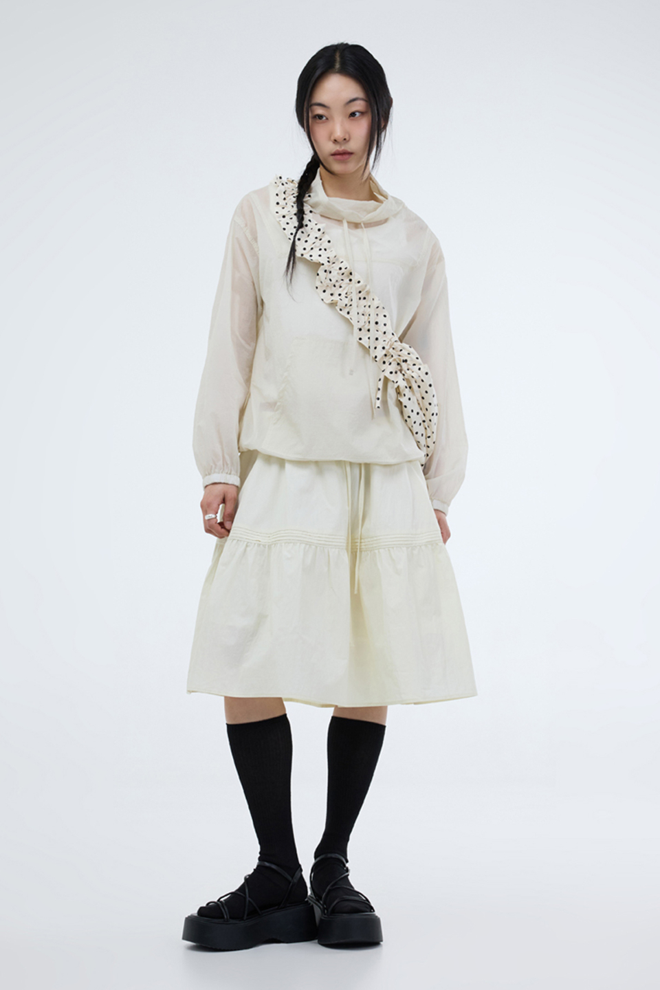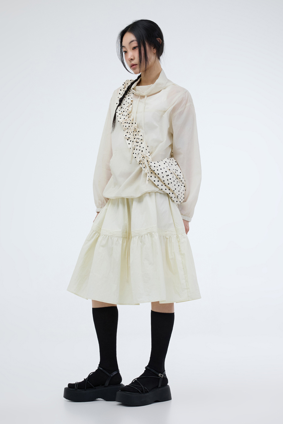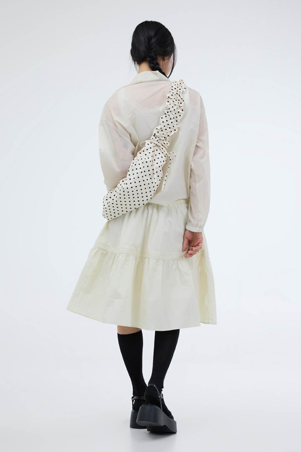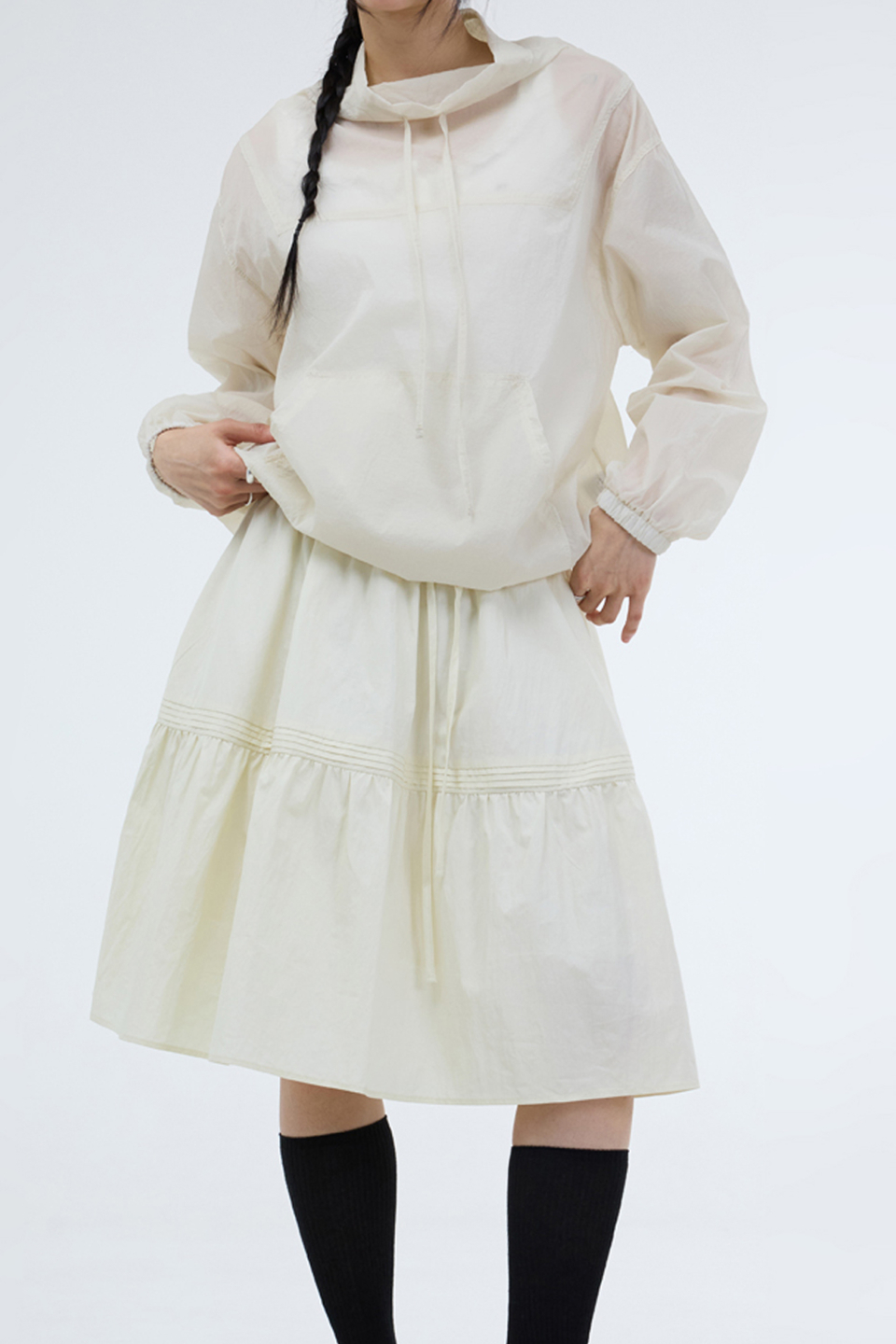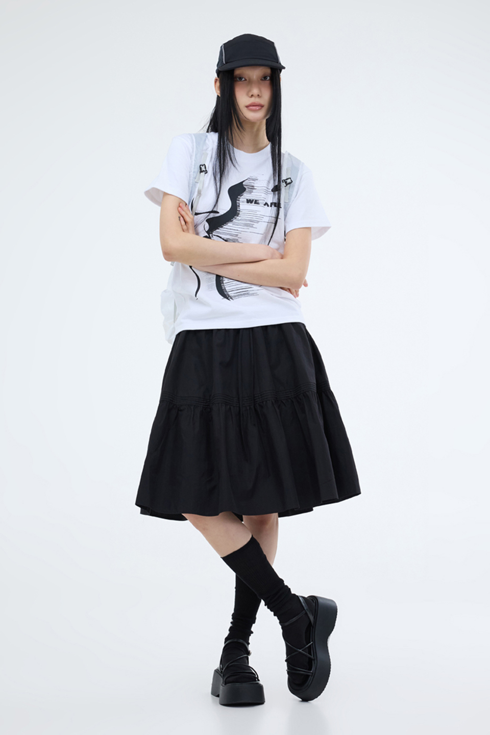 PINTUCK FLARE MID LENGTH SKIRT-4COLOR