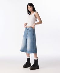 우먼즈 빅 브러쉬 와이드 버뮤다 데님 팬츠 [라이트 인디고]