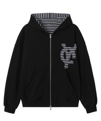 REVERSIBLE STRIPE HOODIE ZIP UP - BLACK