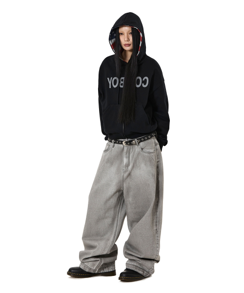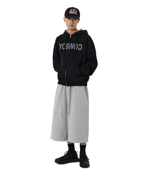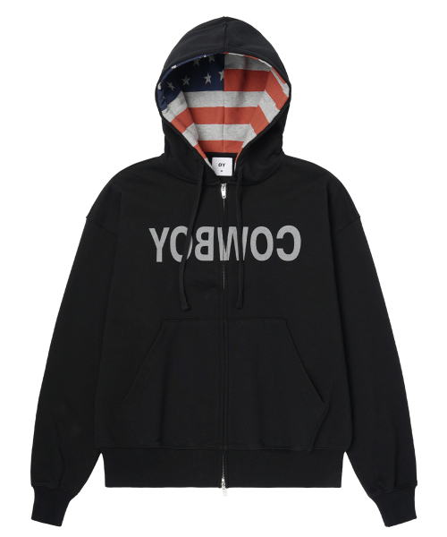 REVERSE COWBOY HOODIE ZIP UP - BLACK