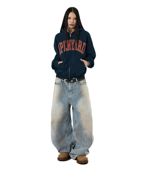 SATIN PATCH HOODIE ZIP UP - NAVY
