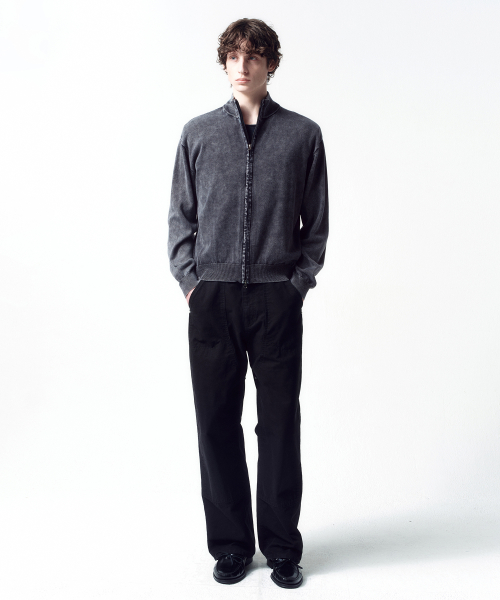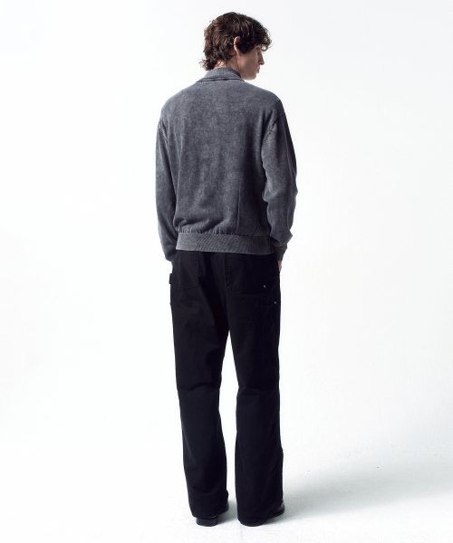 멀티 포켓 버튼 클로징 카라 배색 워크 트러커 코튼 자켓[차콜]