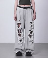 Scratch Damage Wide Sweat Pants [ Melange Gray ]