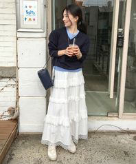 [여울 PICK] Eyelet Tiered Maxi Skirt - Off White