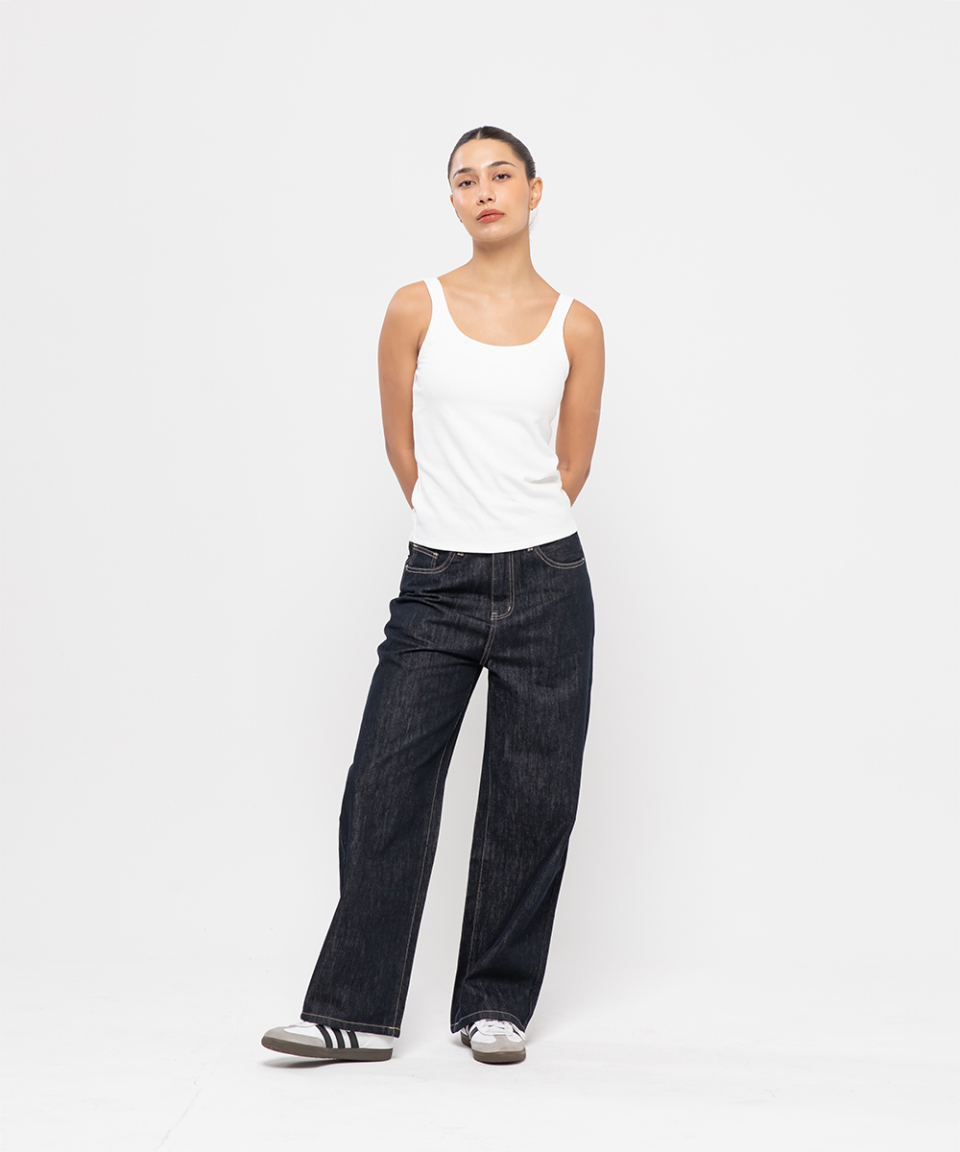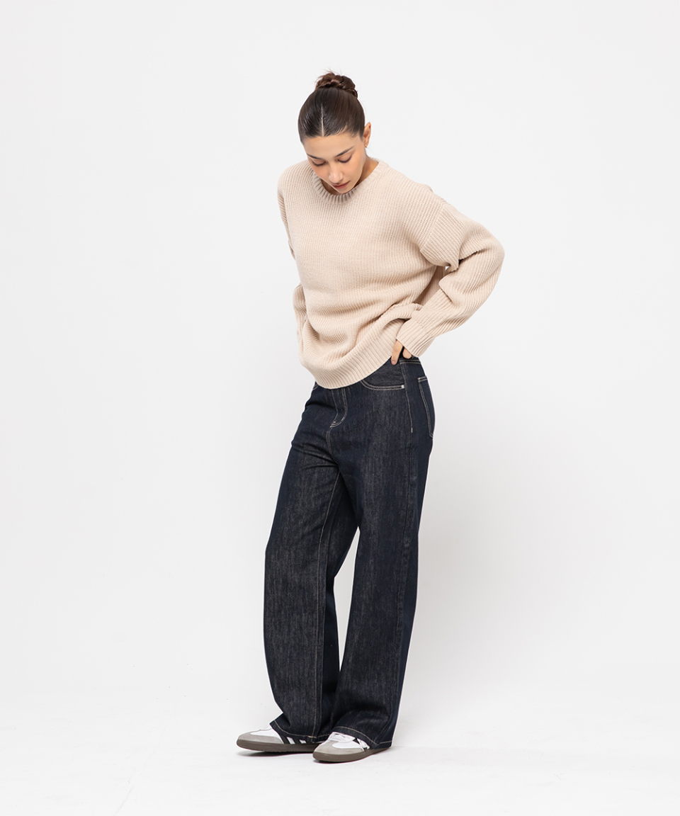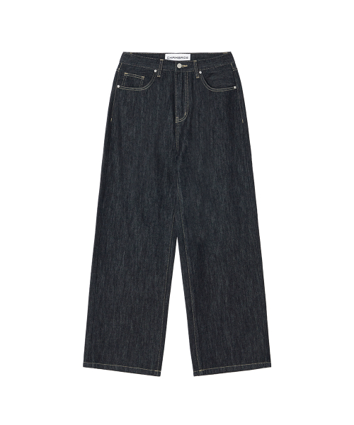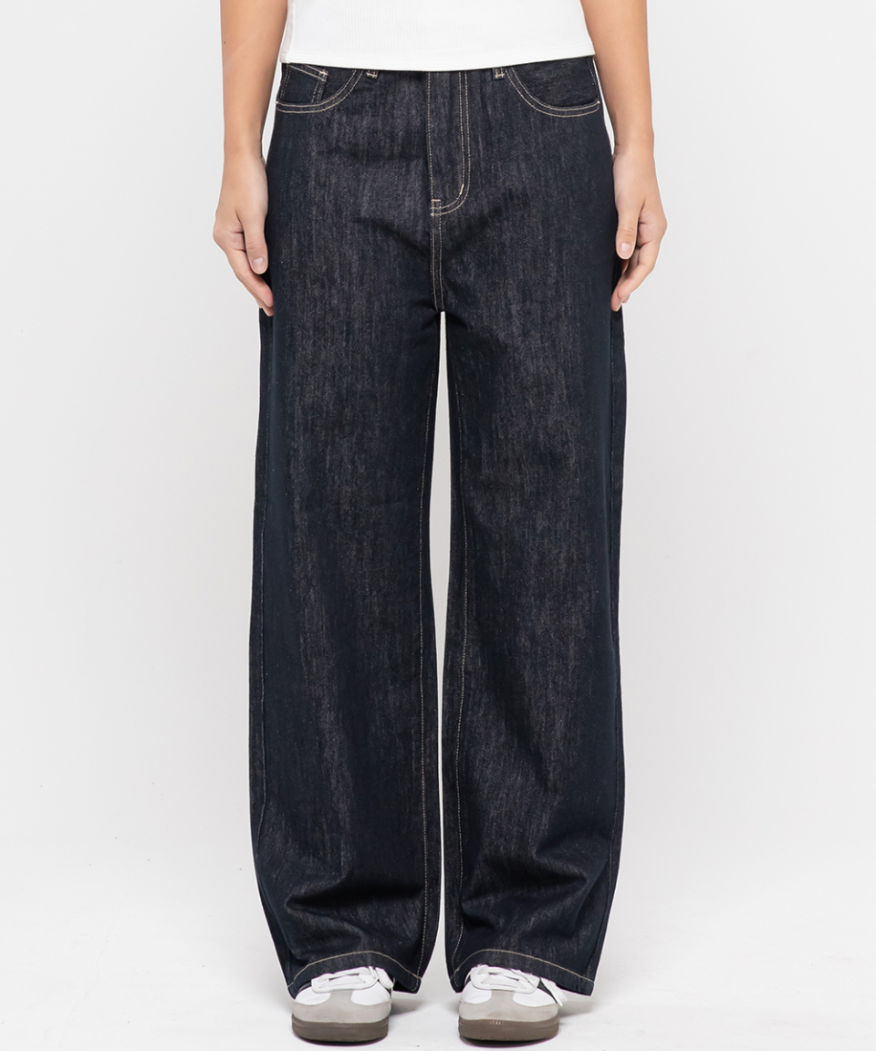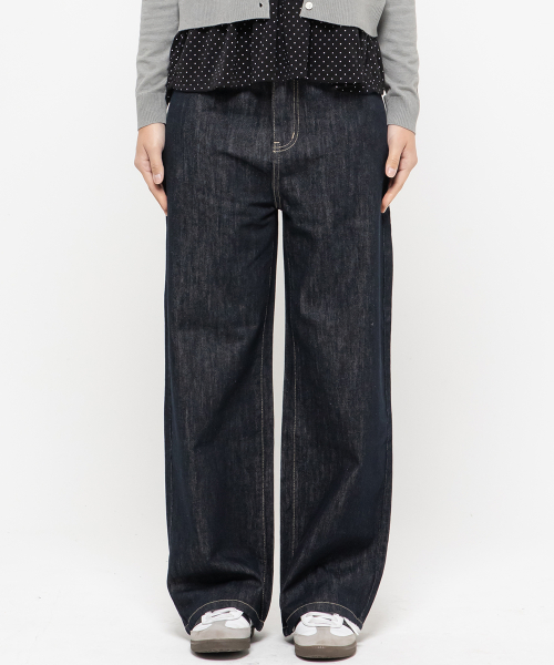 우먼즈 세미 와이드 워싱 데님팬츠[딥블루인디고]