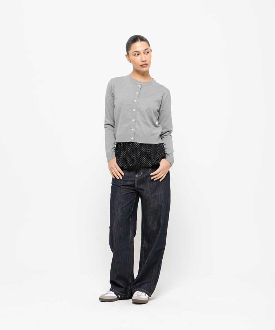 W 부클 라운드넥 니트 집업 (LIGHT BEIGE)