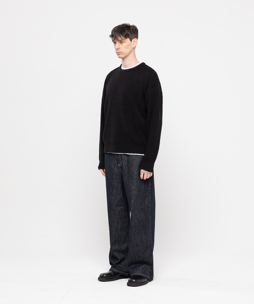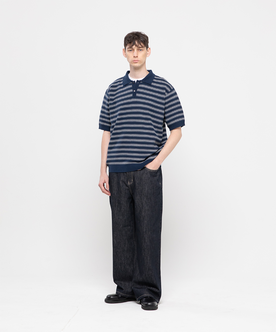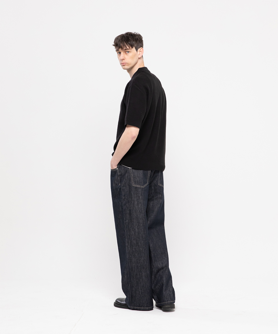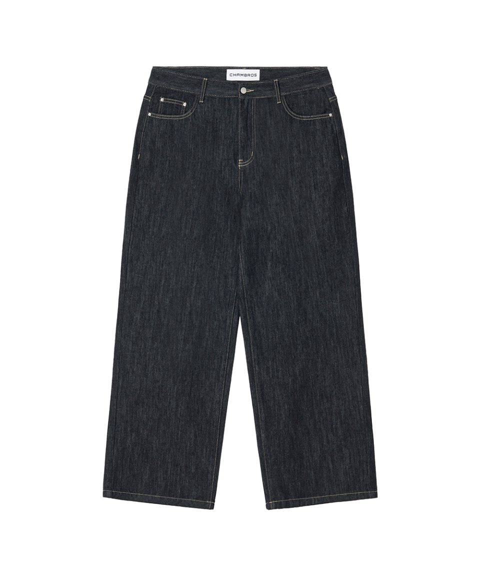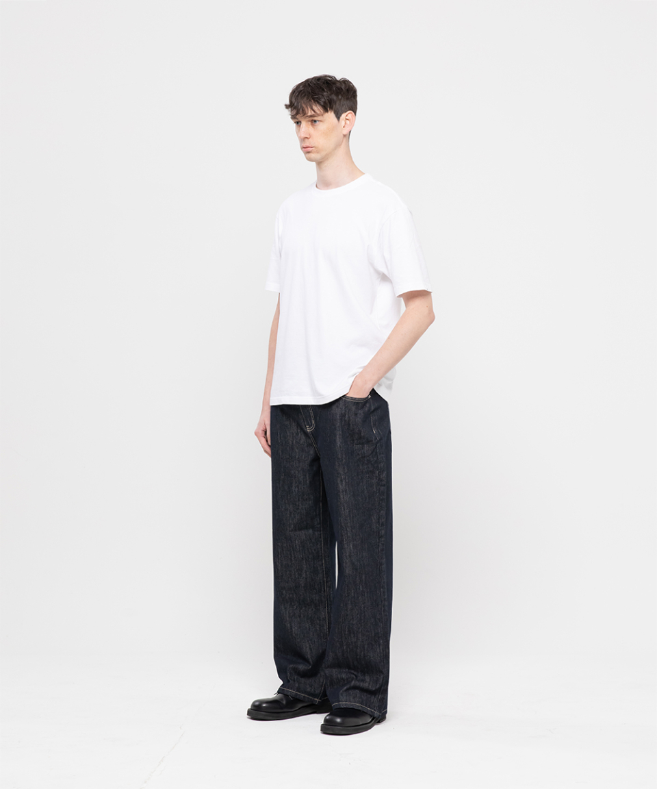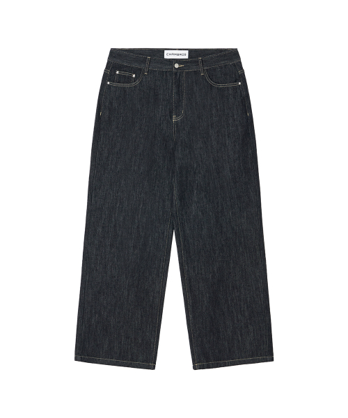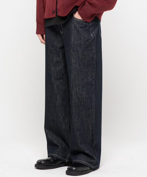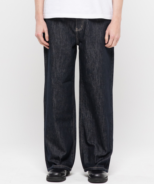 논페이드 베이직 세미 와이드 코튼 데님팬츠[딥블루인디고]