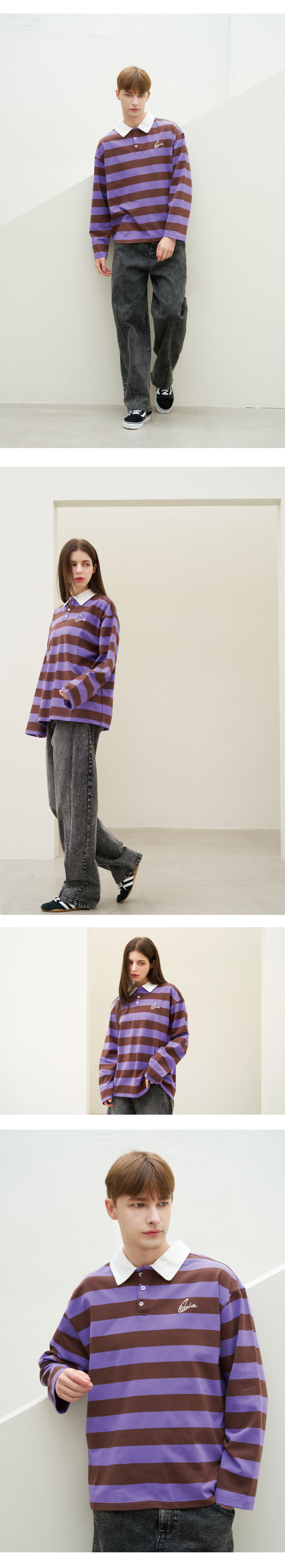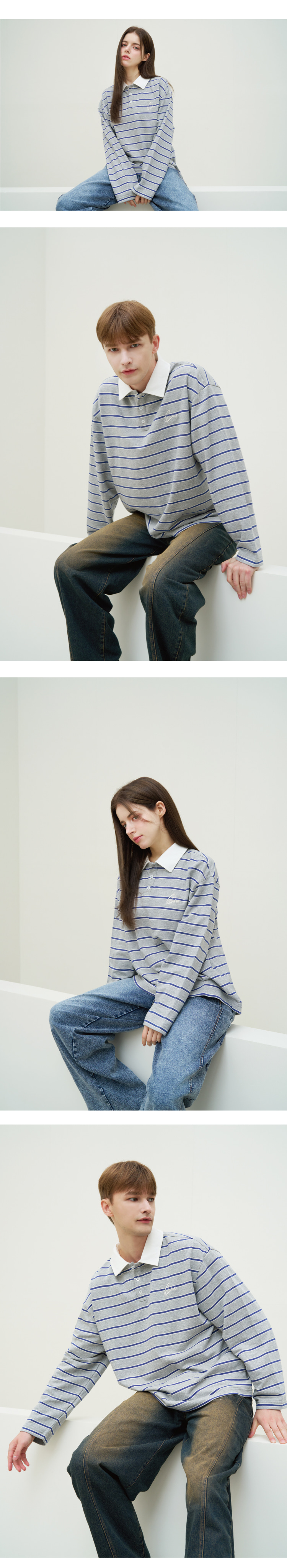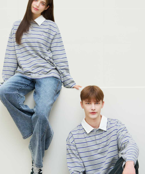 스트라이프 폴로 롱슬리브 티셔츠