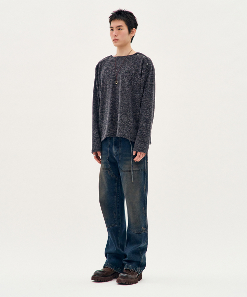 STRIPE MIXED CARGO DENIM PANTS - DENIM