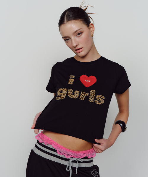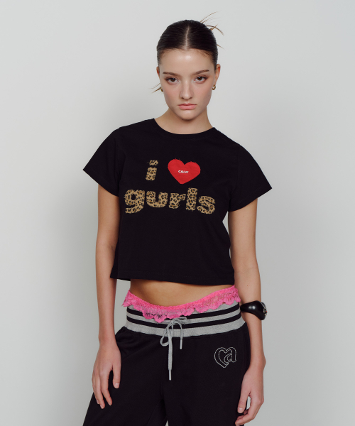 VINTAGE LEOPARD GURLS T-SHIRT BLACK