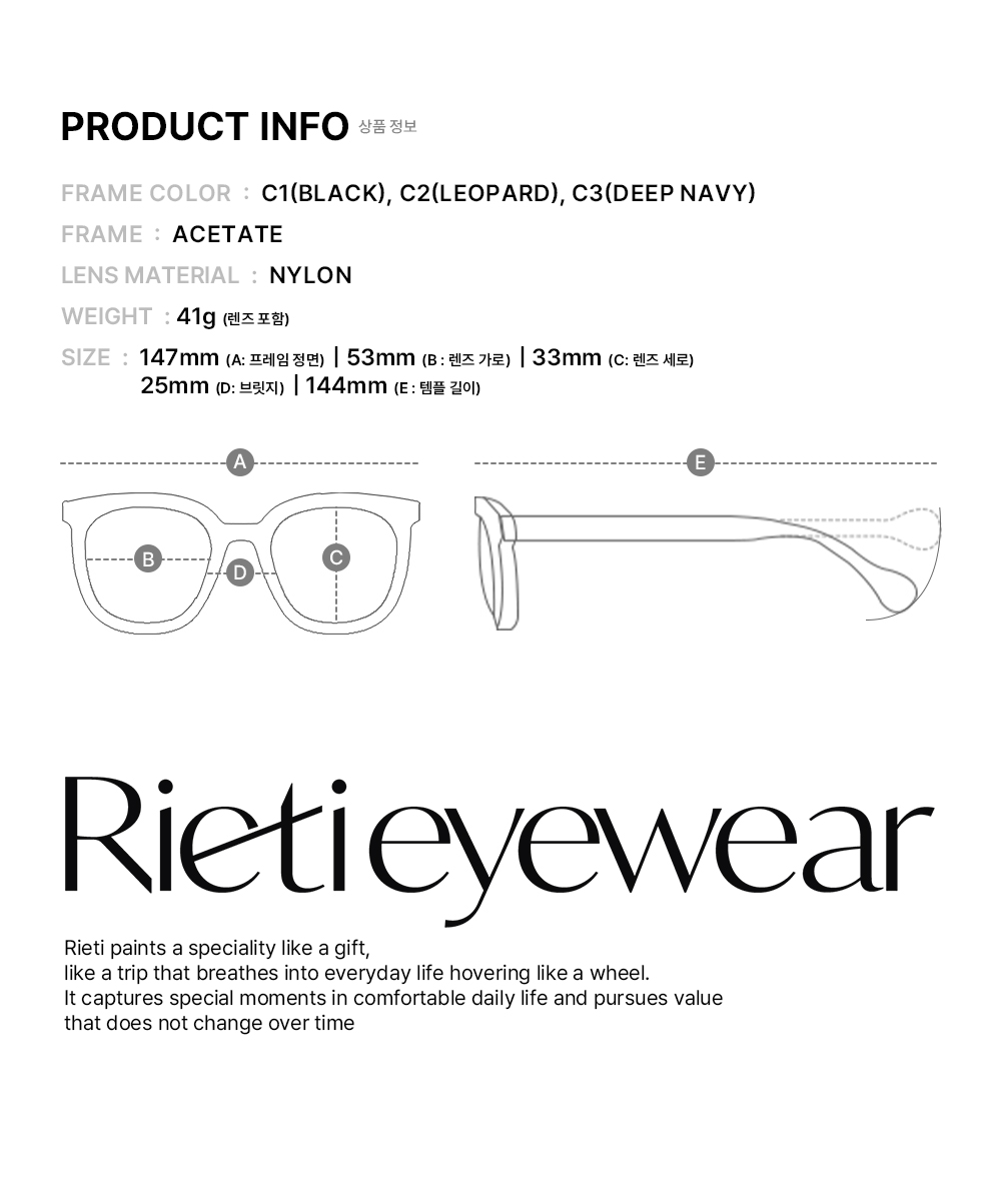 리에티(RIETI)는 아이웨어의 본질적 가치에 트렌디하고 편안한 무드를 더해 매 시즌 지속 가능한, 합리적인 아이템을 선보이는 브랜드입니다.