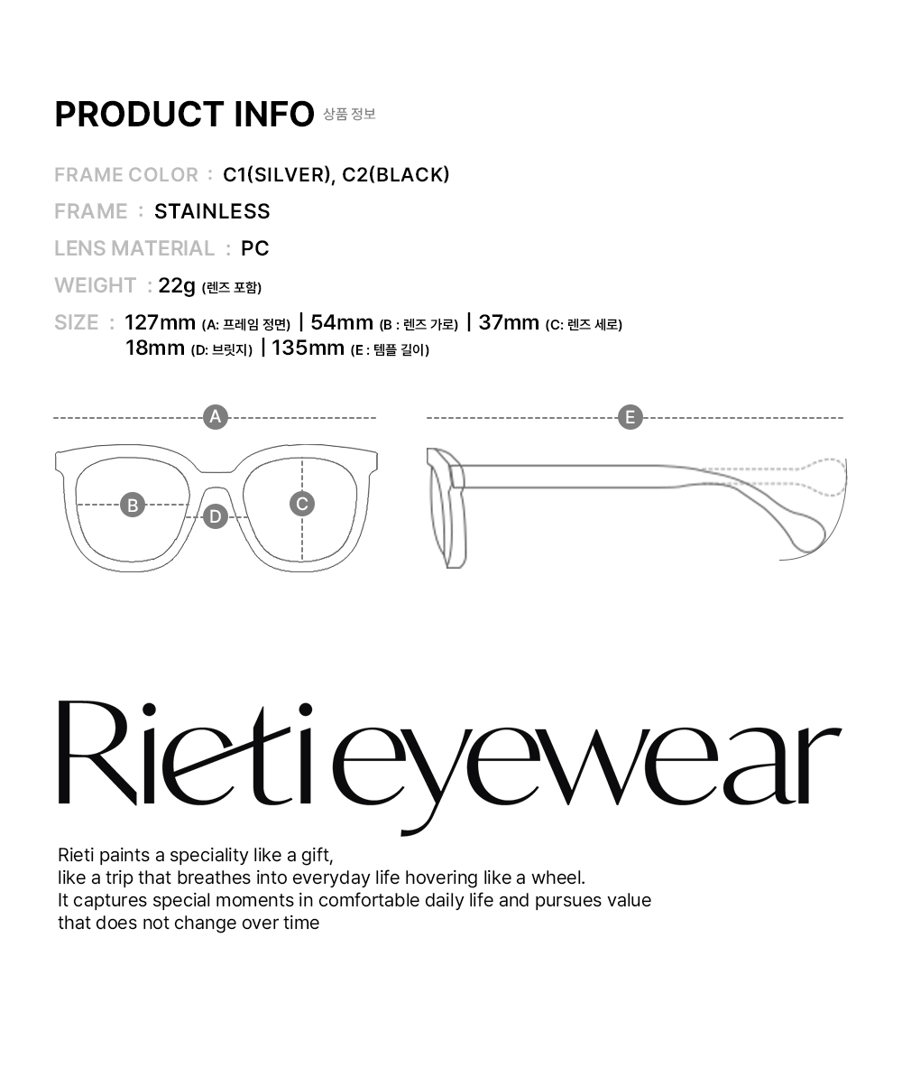 리에티(RIETI)는 아이웨어의 본질적 가치에 트렌디하고 편안한 무드를 더해 매 시즌 지속 가능한, 합리적인 아이템을 선보이는 브랜드입니다.
