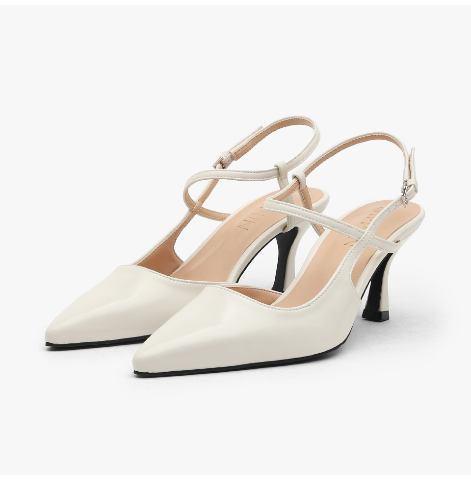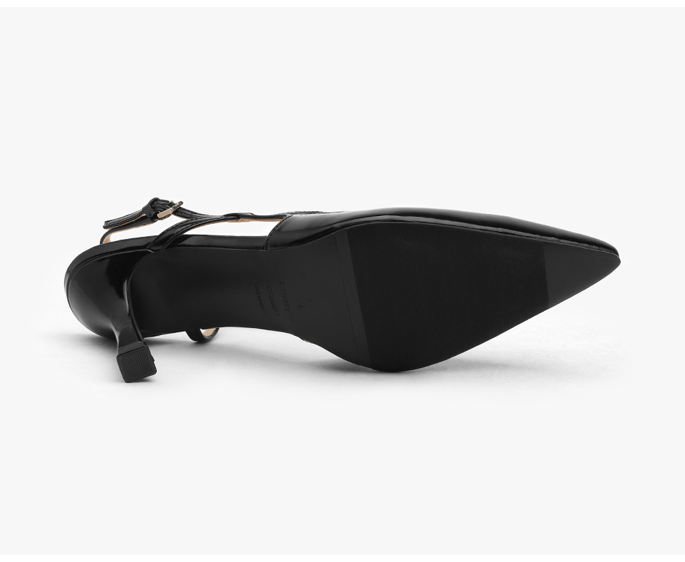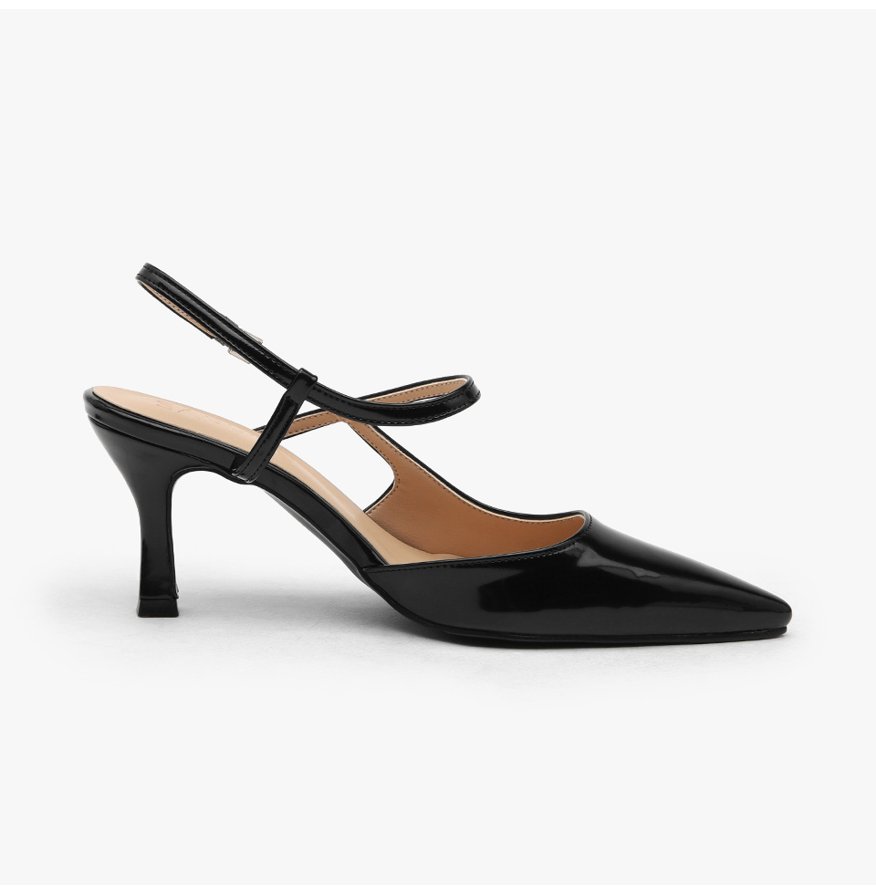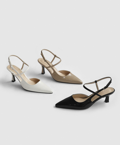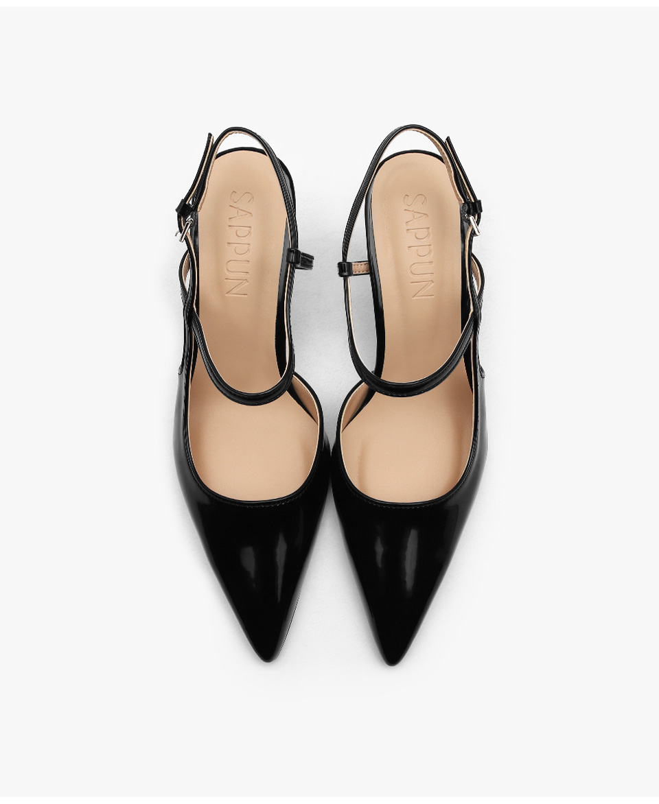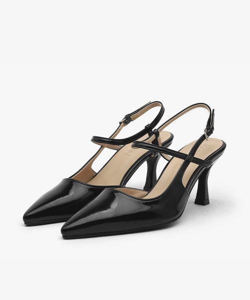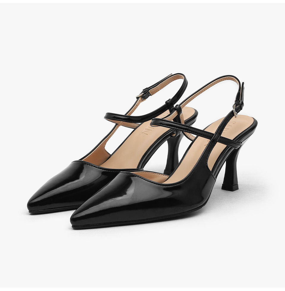 · 세련된 포인티드 쉐입으로 매력적인 무드의 슬링백힐입니다.