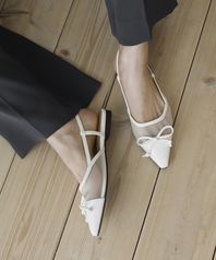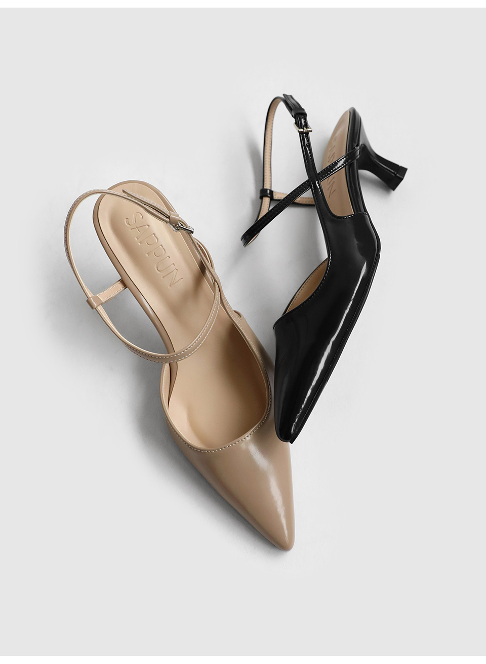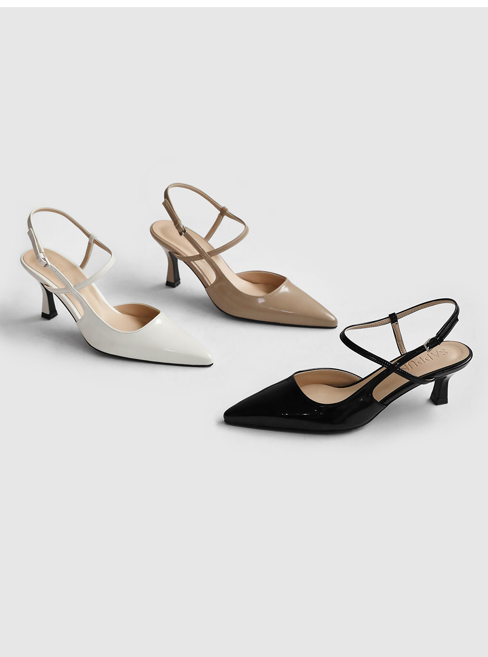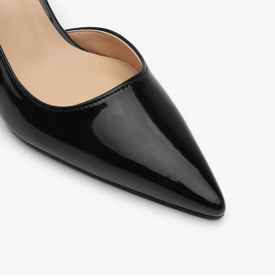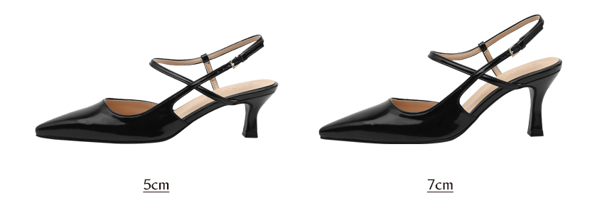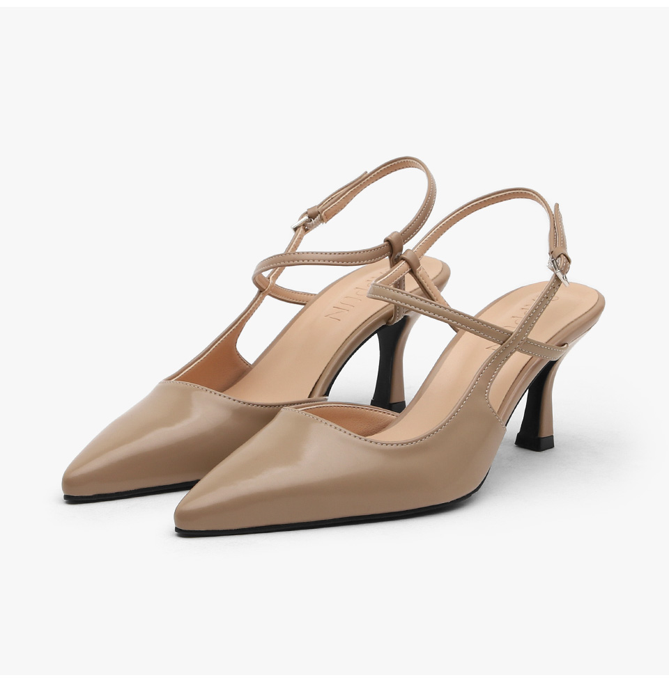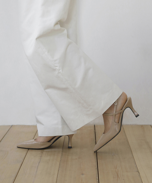 · 세련된 포인티드 쉐입으로 매력적인 무드의 슬링백힐입니다.