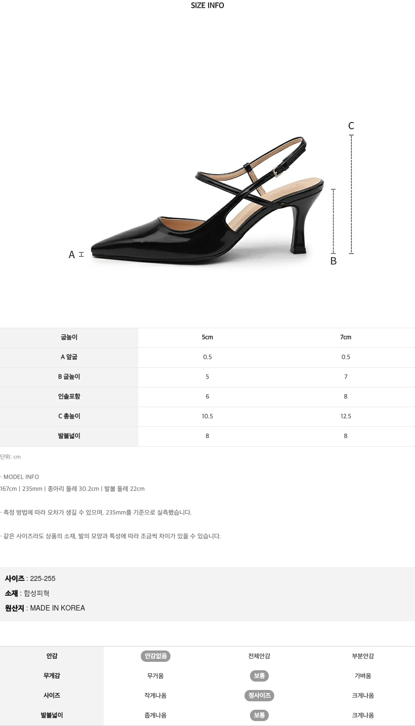 · 5 / 7cm 두 가지 굽 높이로 취향에 맞게 선택이 가능합니다.