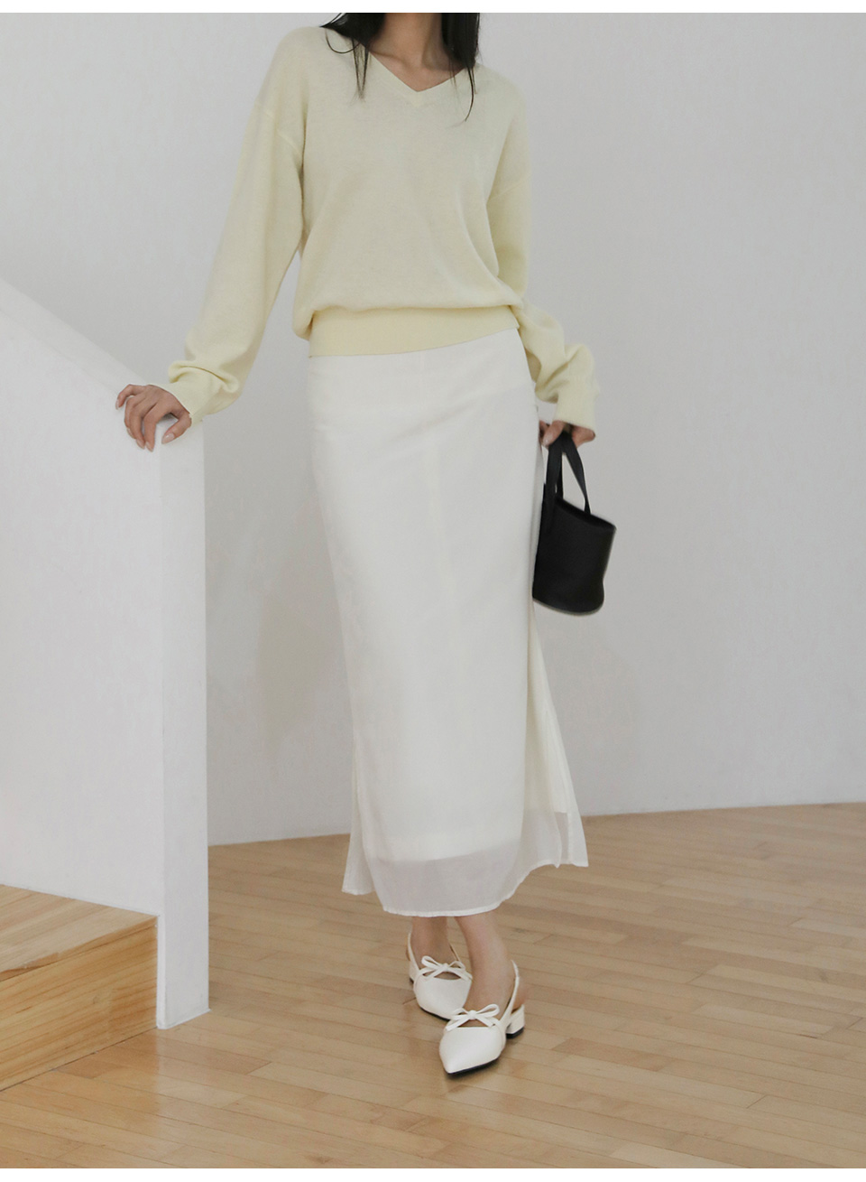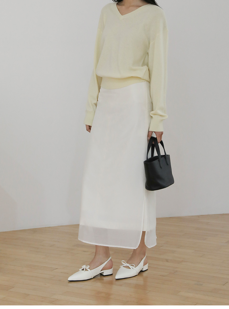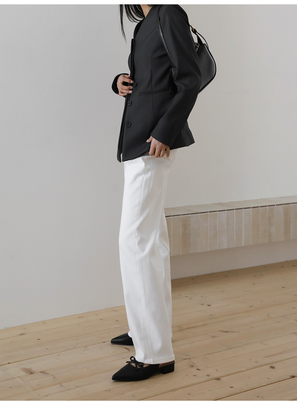 · 리본 디테일 포인트가 더해져 매력적인 실루엣을 보여줍니다.