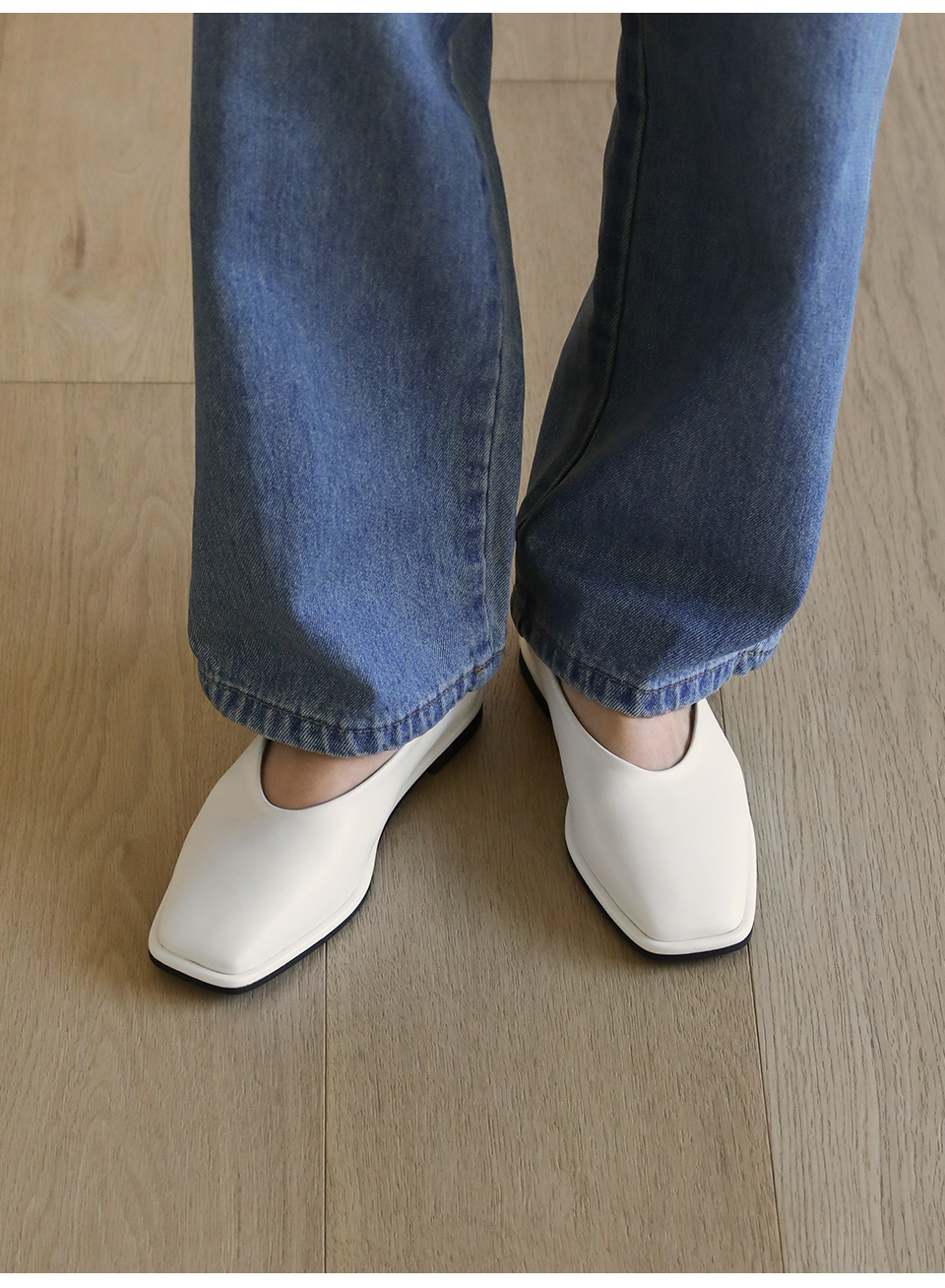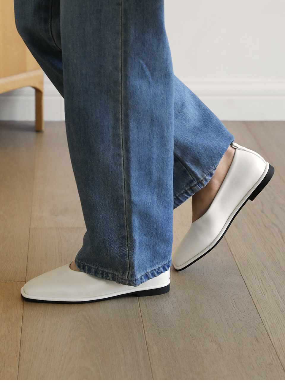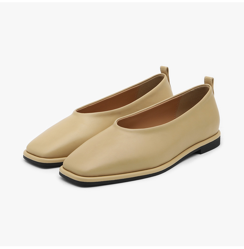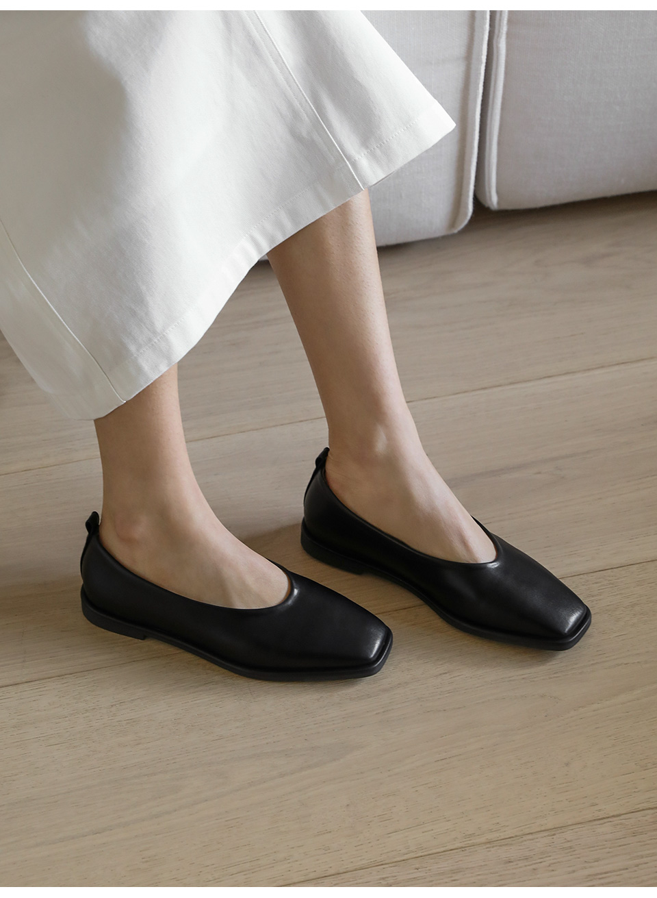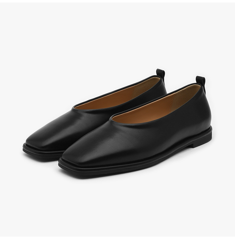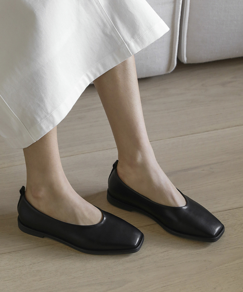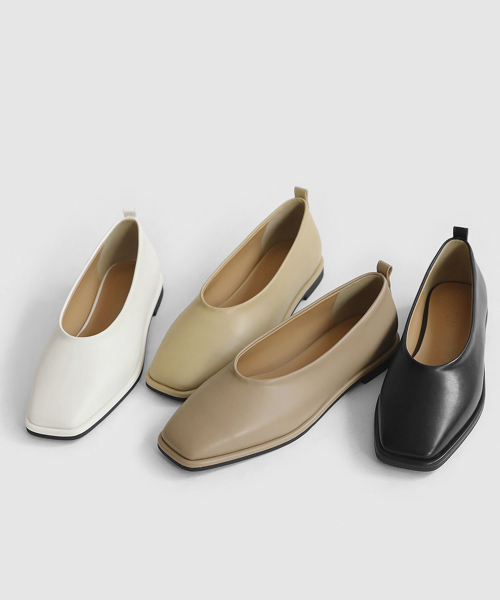 · 모던한 스퀘어 쉐입으로 세련된 분위기를 연출하는 플랫슈즈입니다.