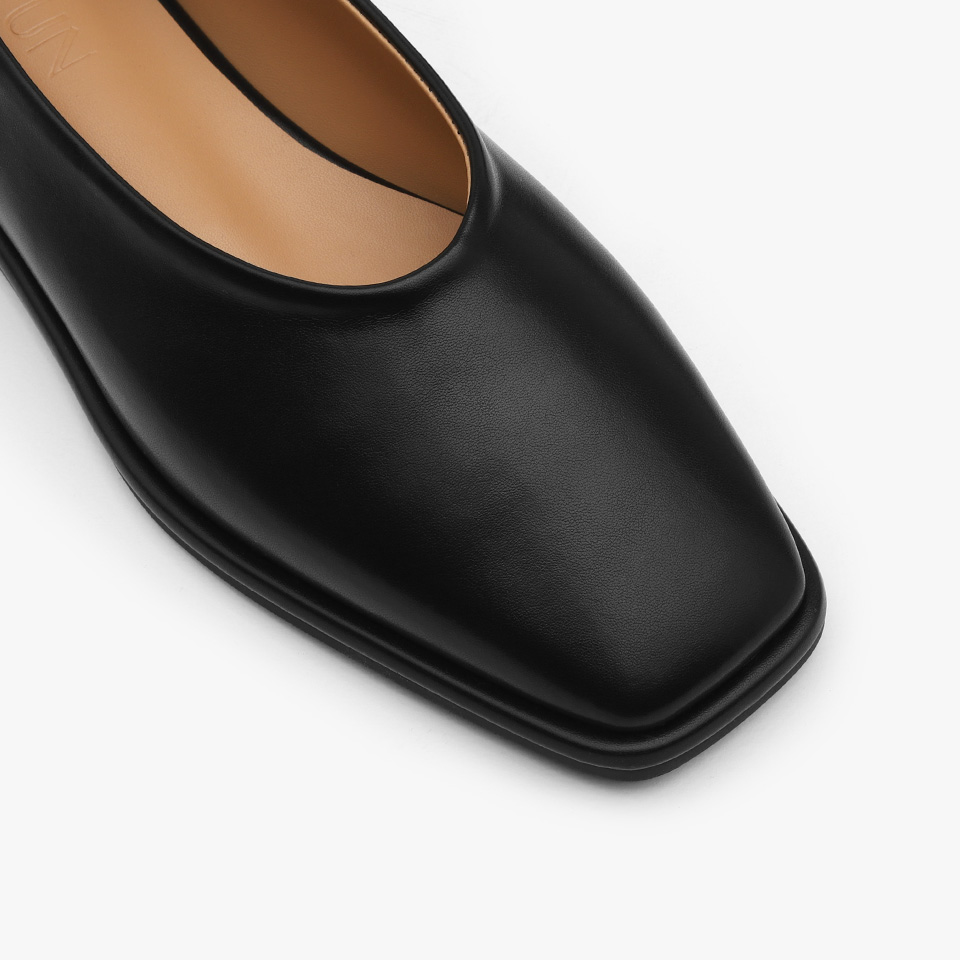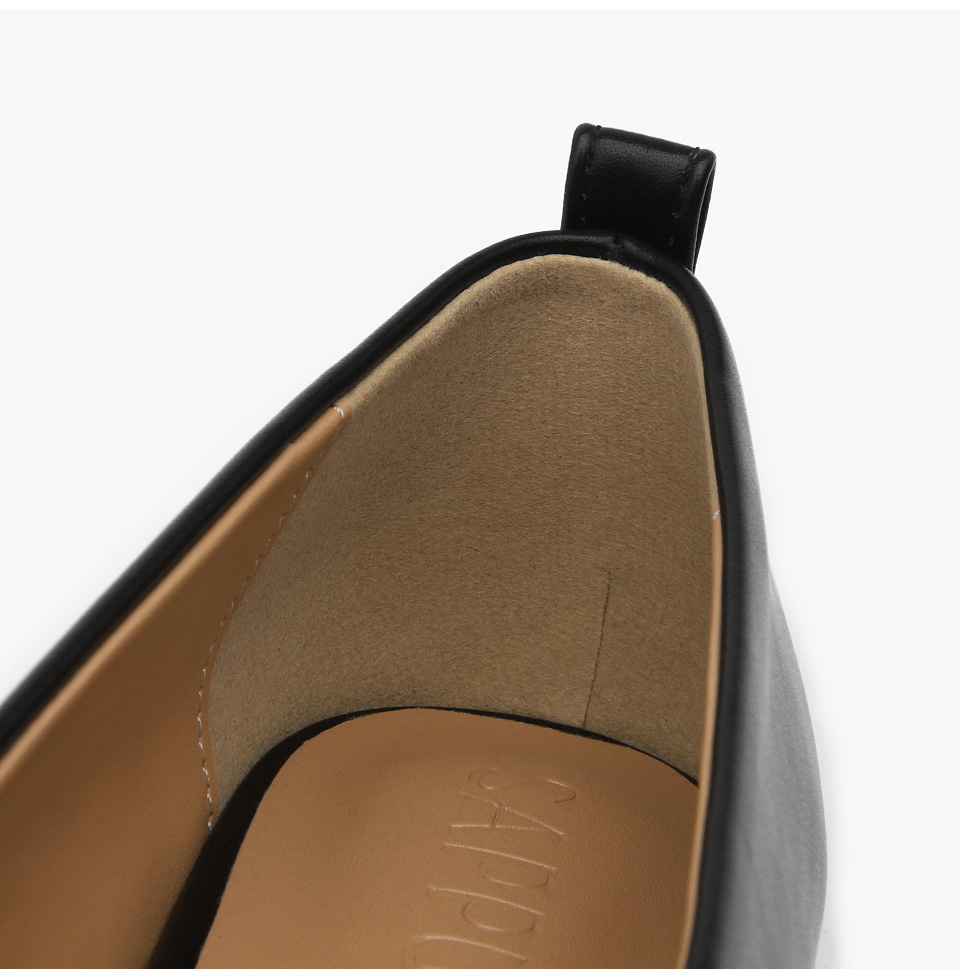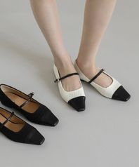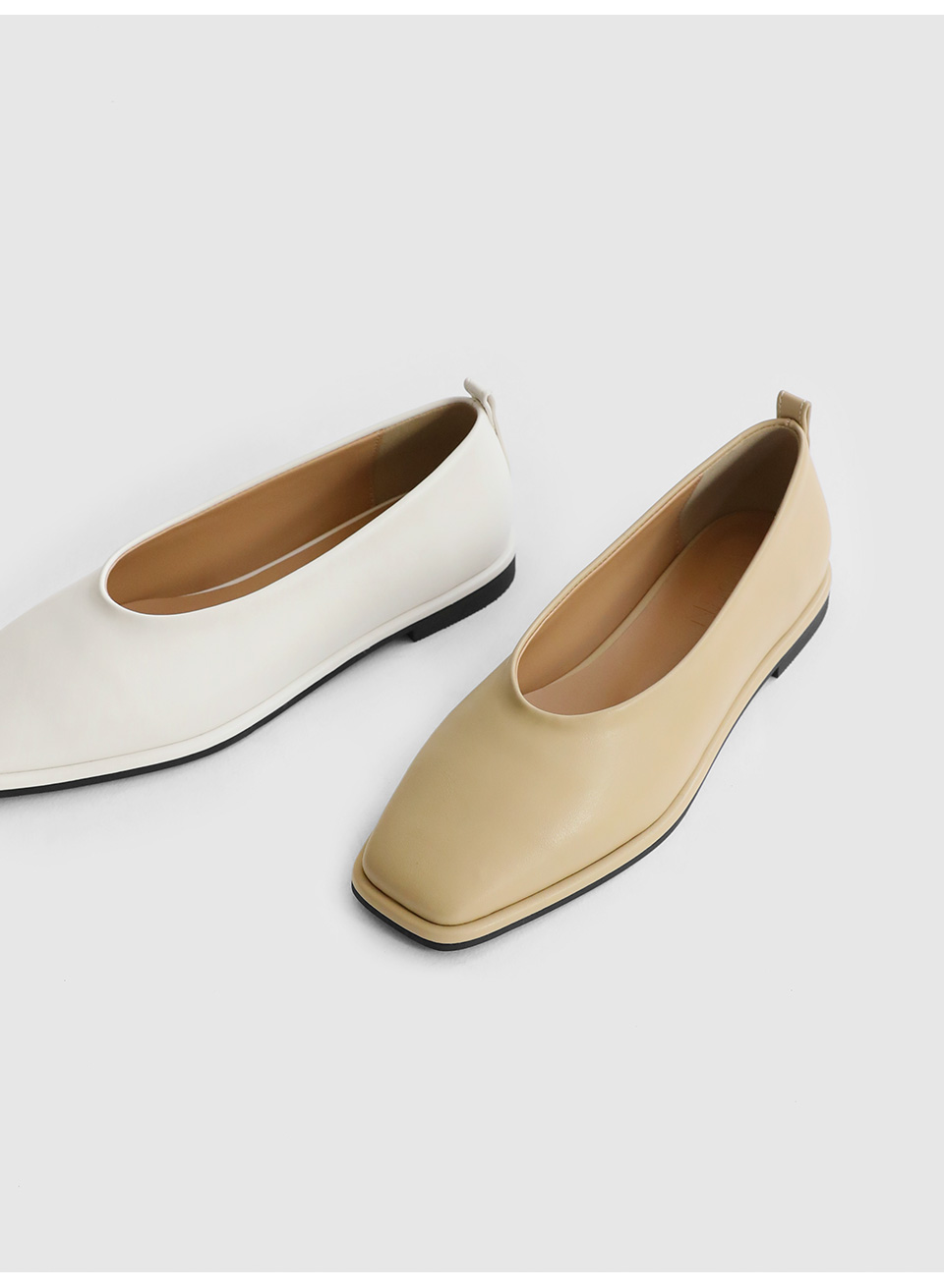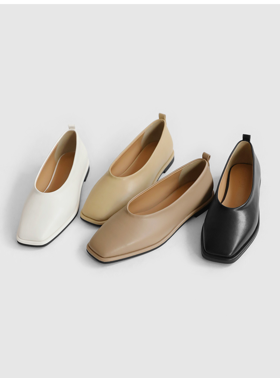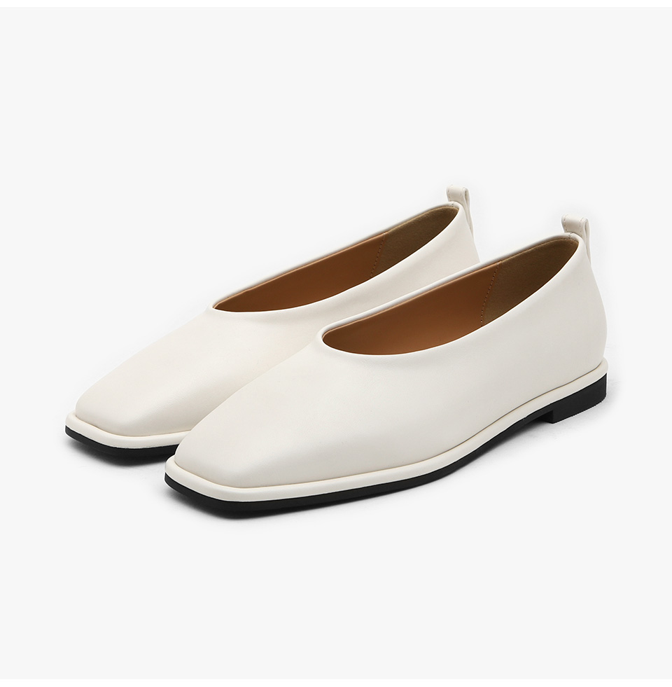 · 모던한 스퀘어 쉐입으로 세련된 분위기를 연출하는 플랫슈즈입니다.