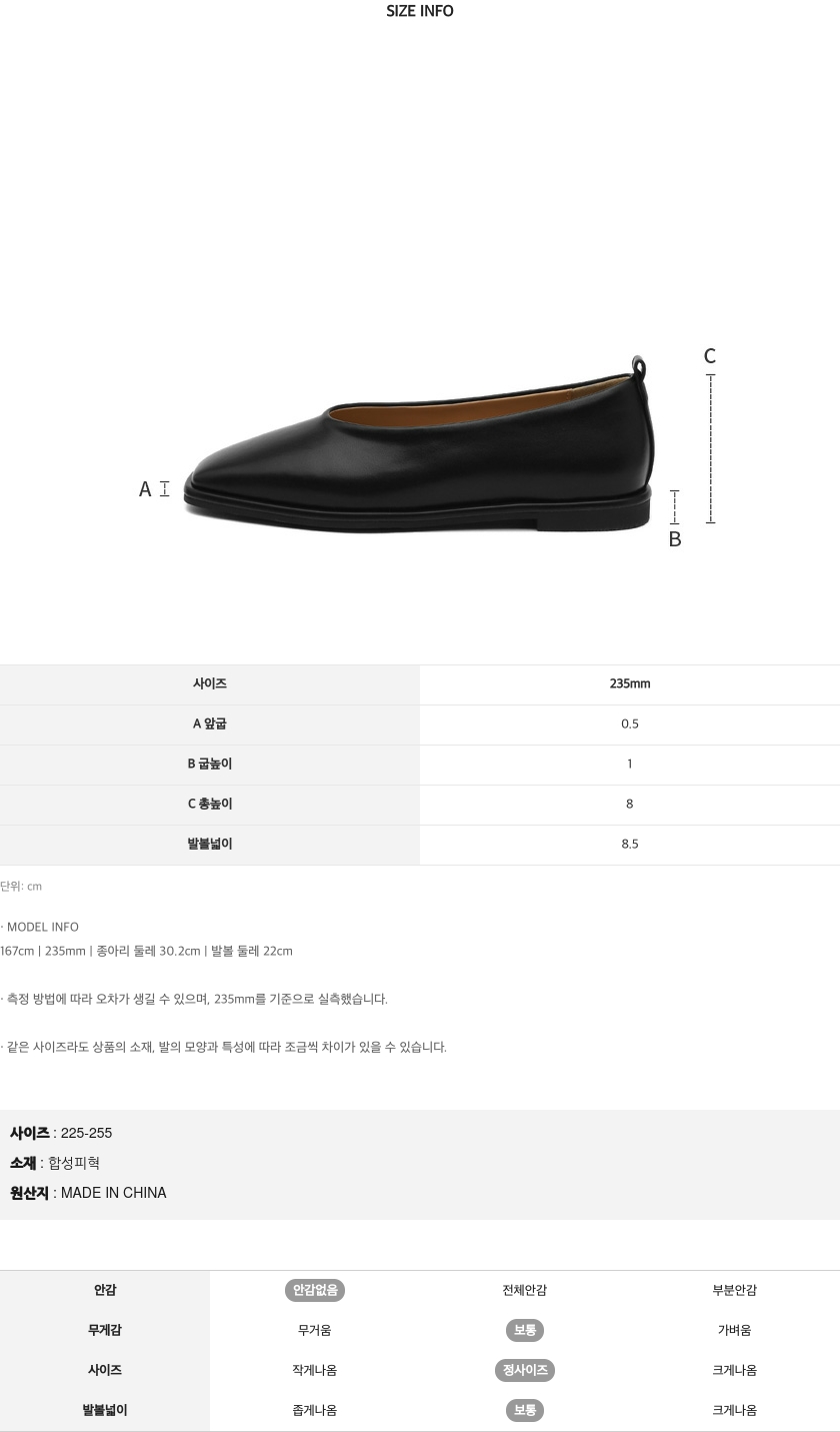 · 1cm 플랫한 굽 높이로 부담 없이 착용할 수 있습니다.