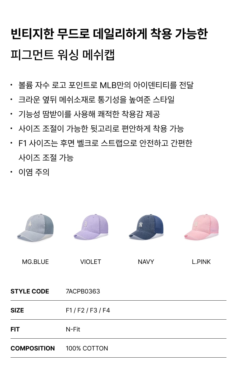 상품명: 피그먼트 워싱 메쉬캡