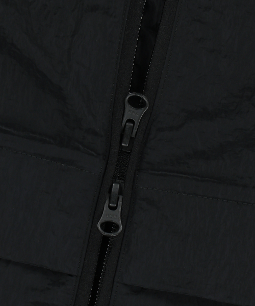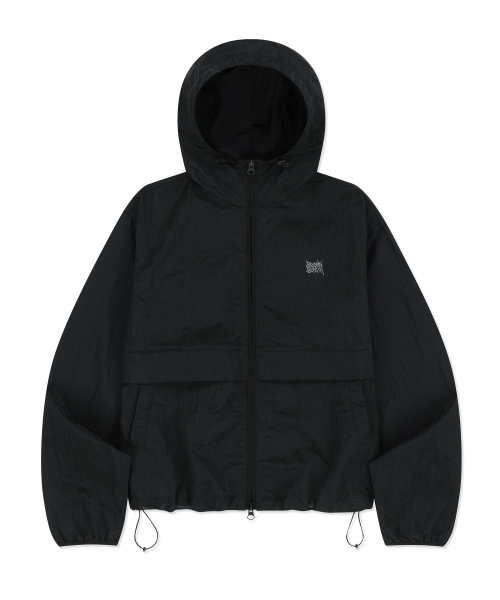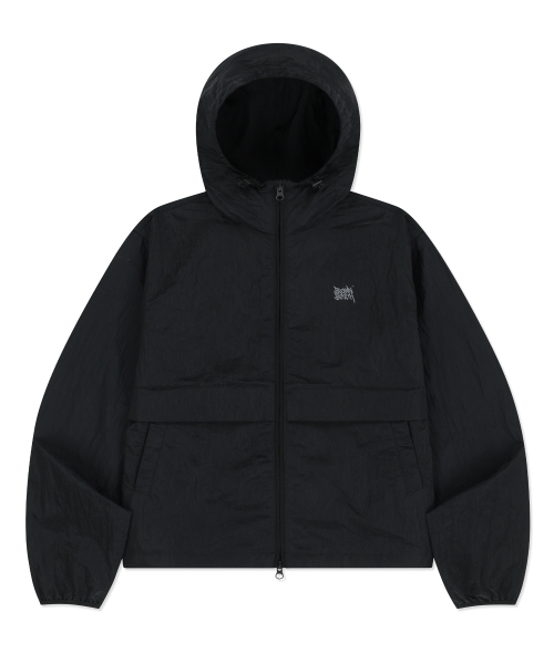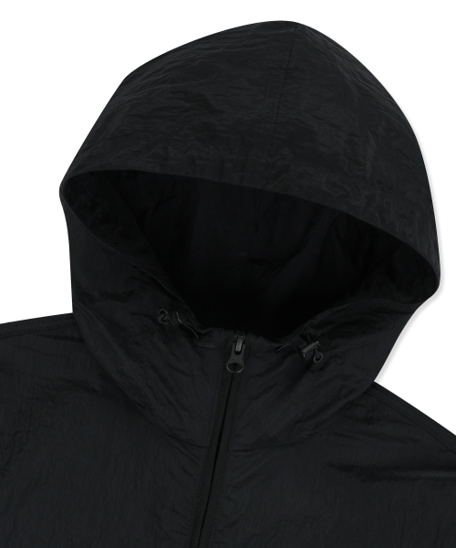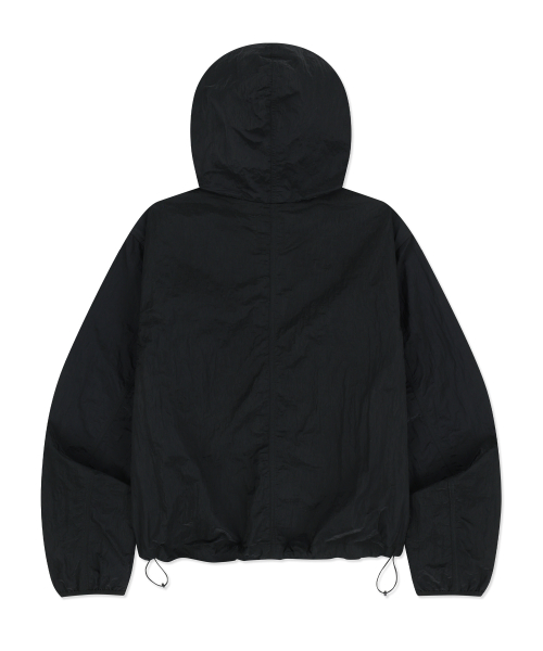 W TAG HIGH NECK HOODIE WINDBREAKER - BLACK