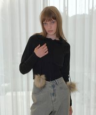 POM-POM KNIT HOOD ZIP-UP [BLACK]