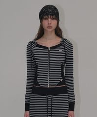STRIPE JERSEY SLIM HOODIE [CHARCOAL]