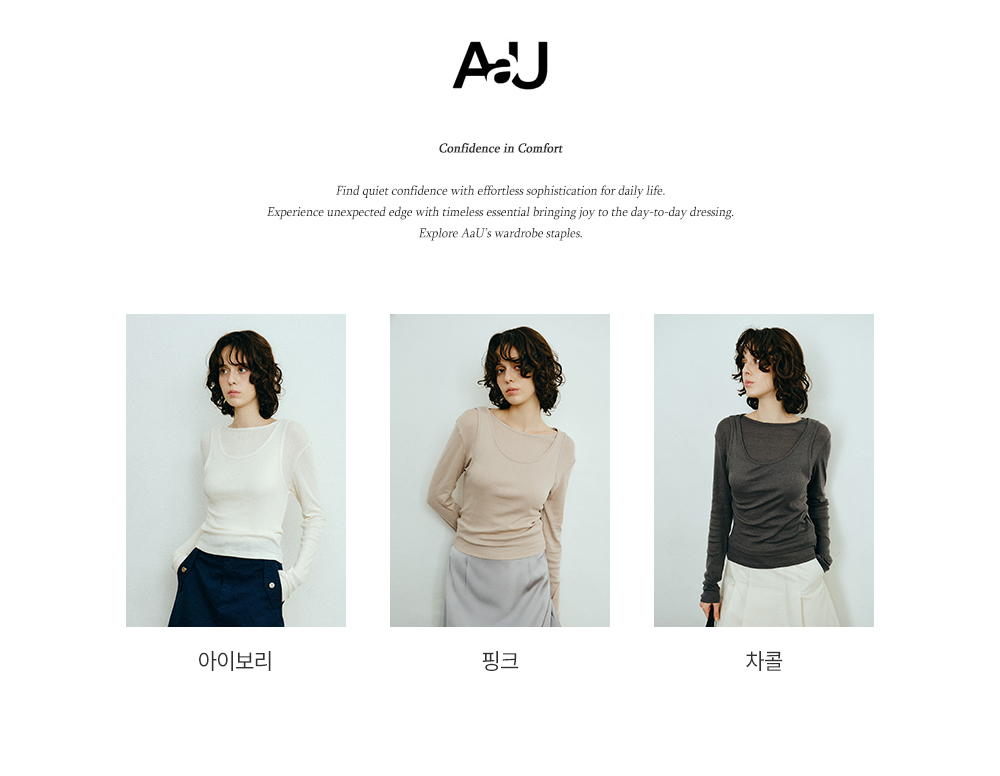 에이에이유(AAU)는 당신의 모든 것을 위한, 당신에게 집중하는 브랜드로 내 몸에 맞춘 듯한 편안함과 격식에 구애받지 않는 데일리 아이템으로 일상에 한 포인트의 멋을 더하는 브랜드입니다.