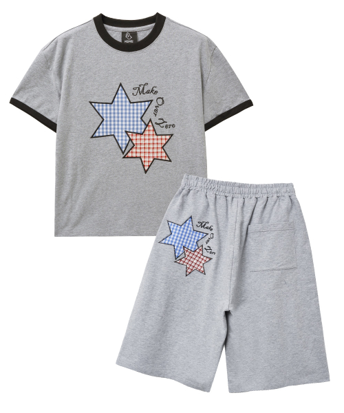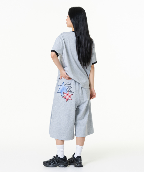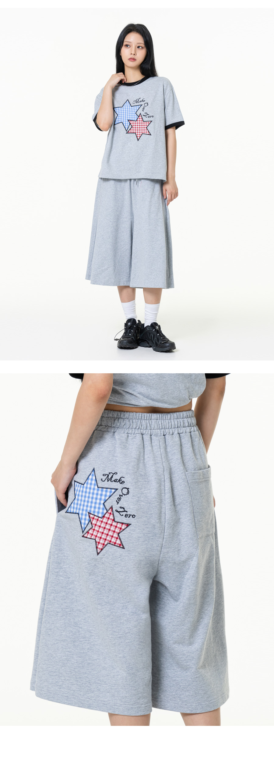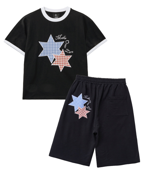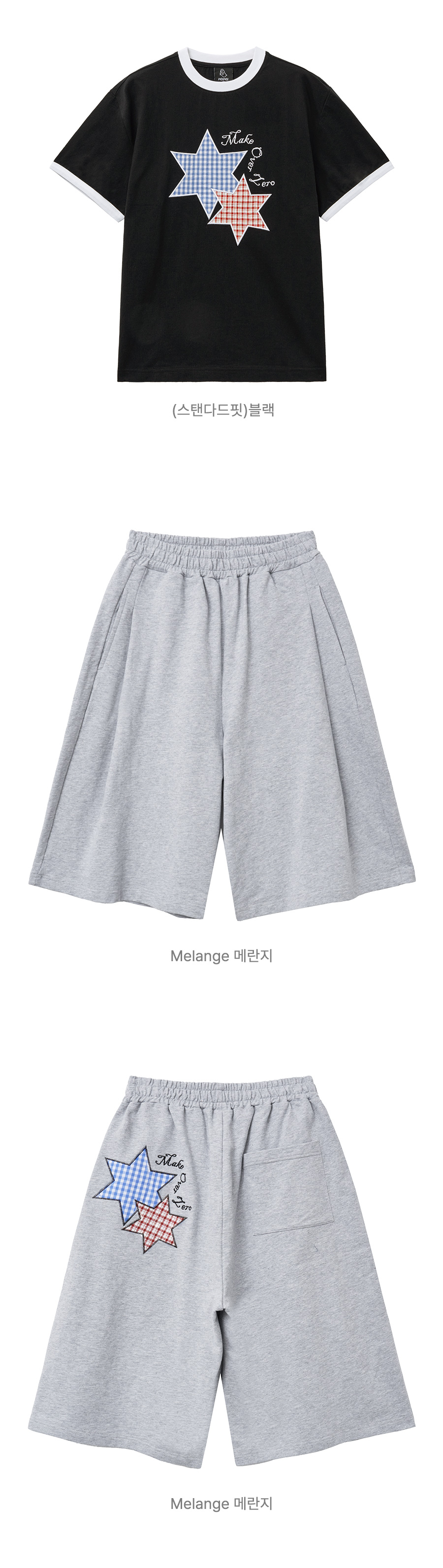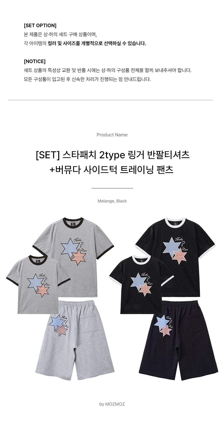 [SET] 스타패치 2type 링거 반팔티셔츠+버뮤다 사이드턱 트레이닝 팬츠