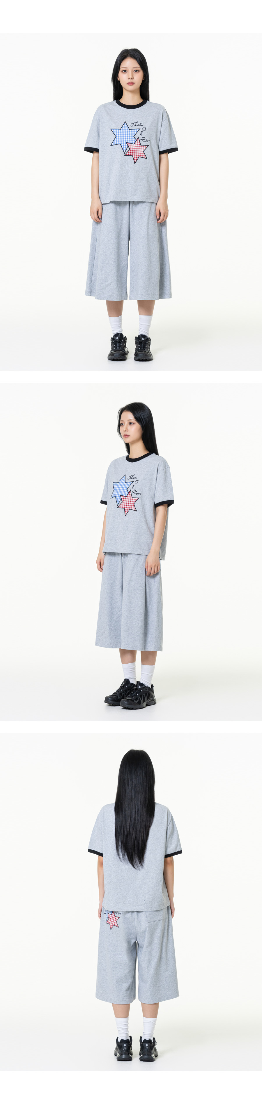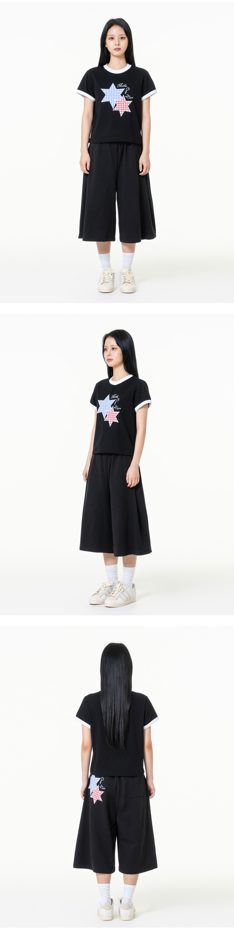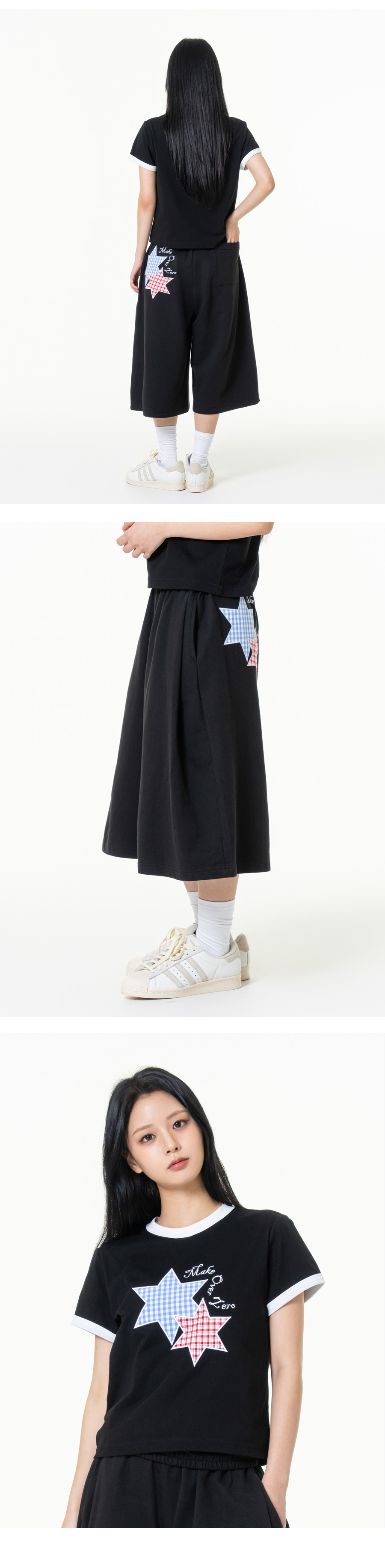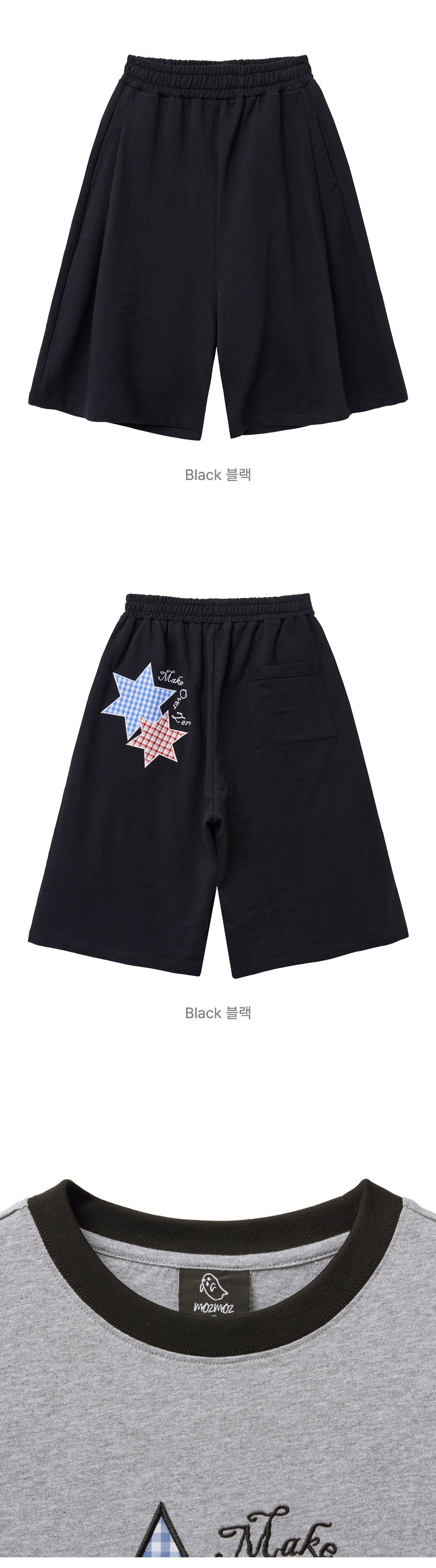 [SET] 스타패치 2type 링거 반팔티셔츠+버뮤다 사이드턱 트레이닝 팬츠