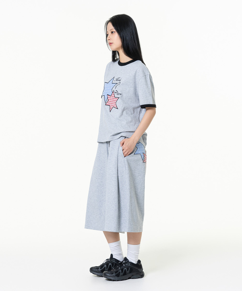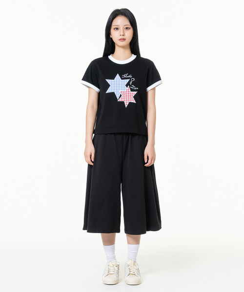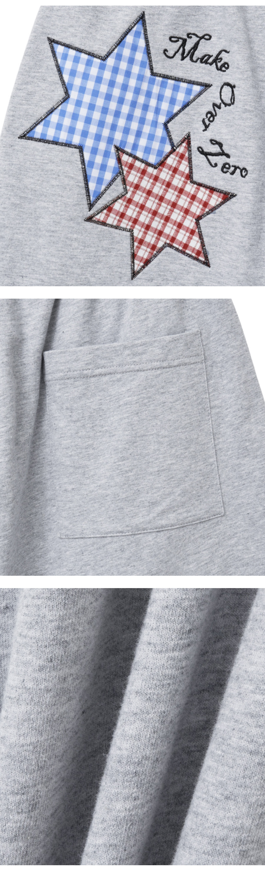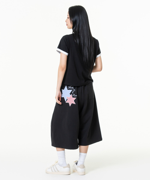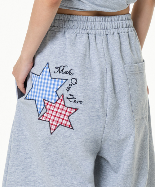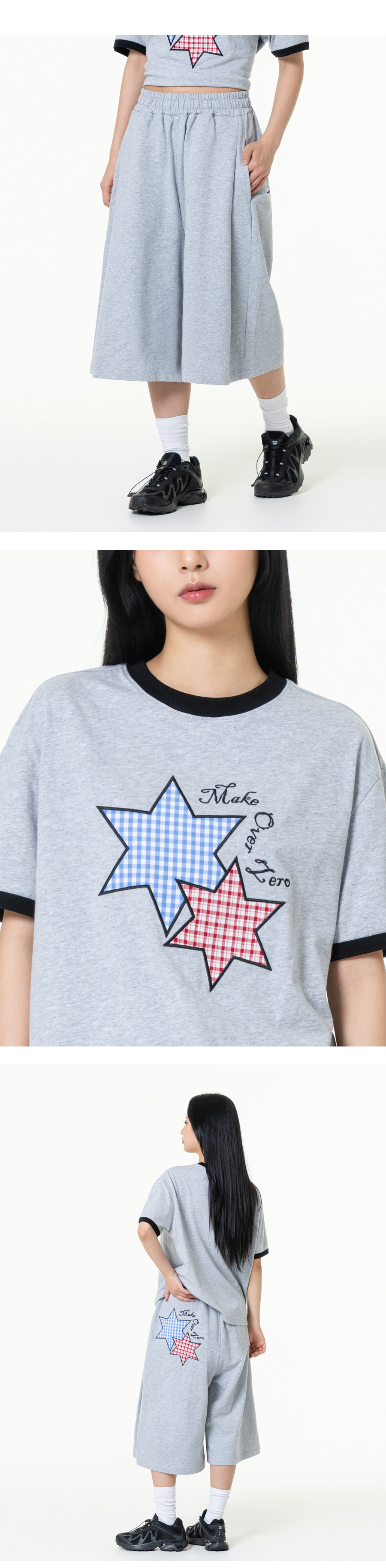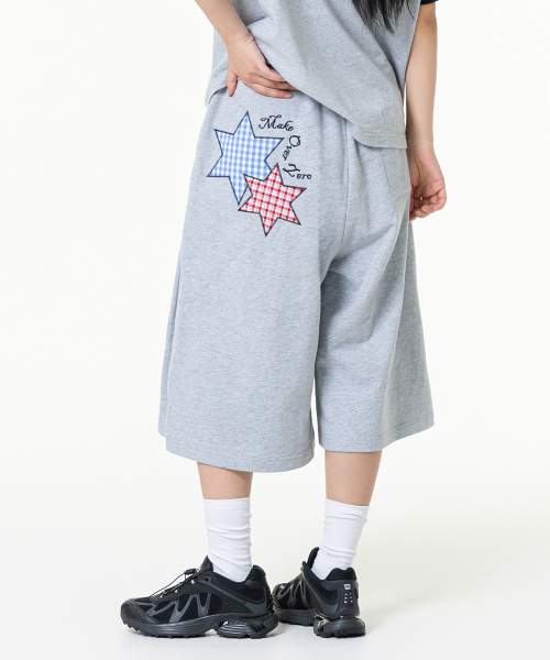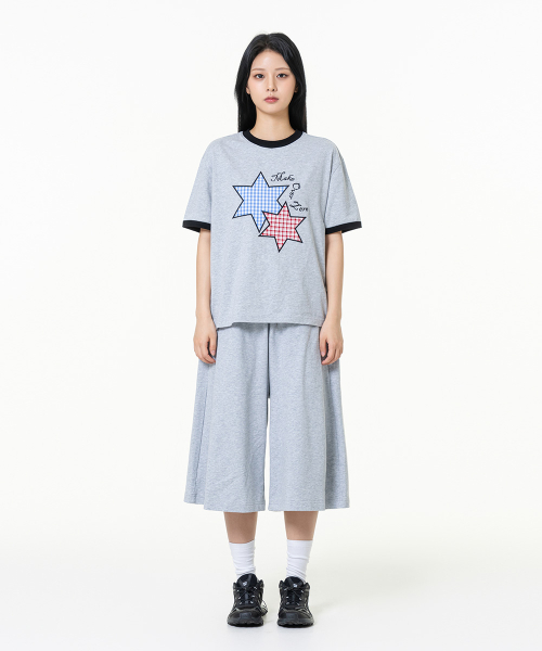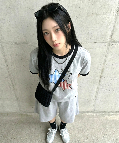 [SET] 스타패치 2type 링거 반팔티셔츠+버뮤다 사이드턱 트레이닝 팬츠