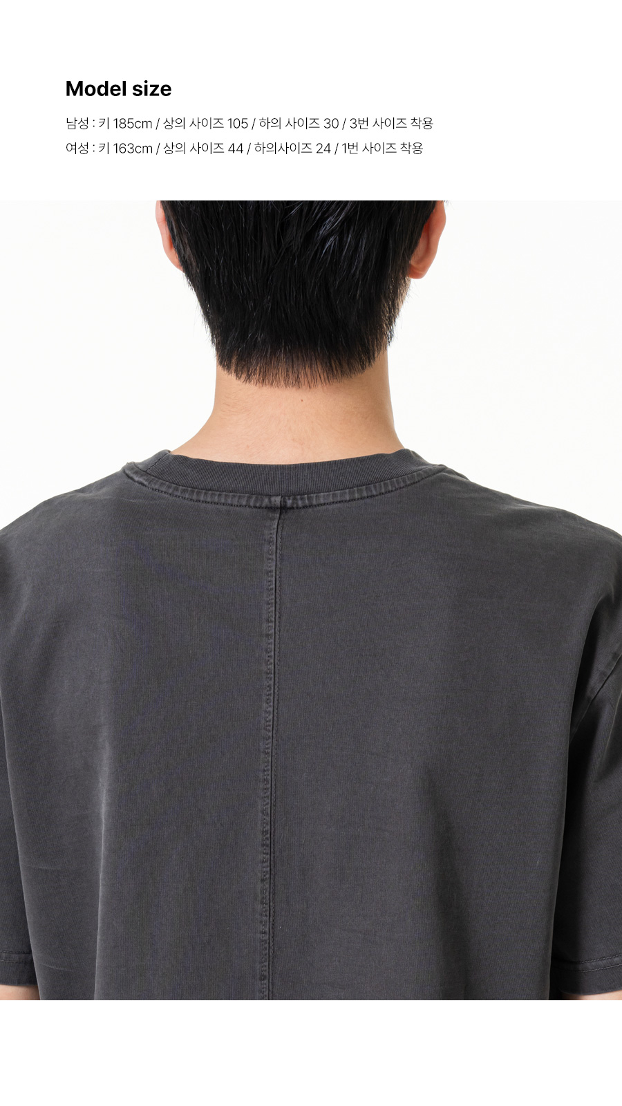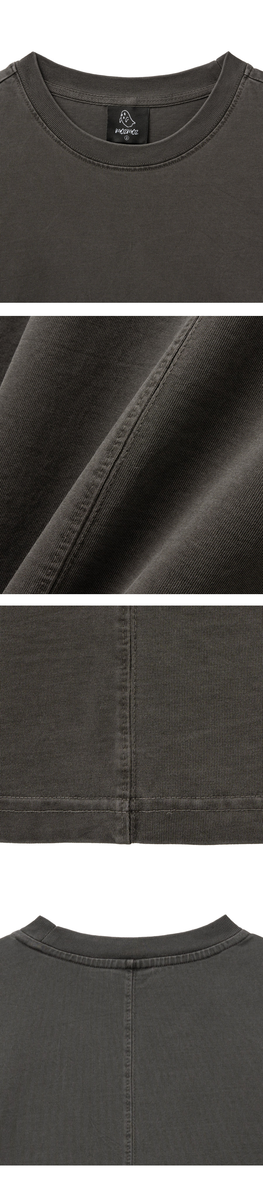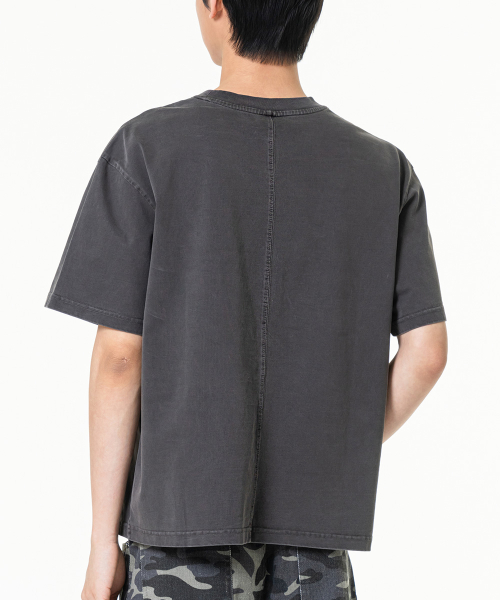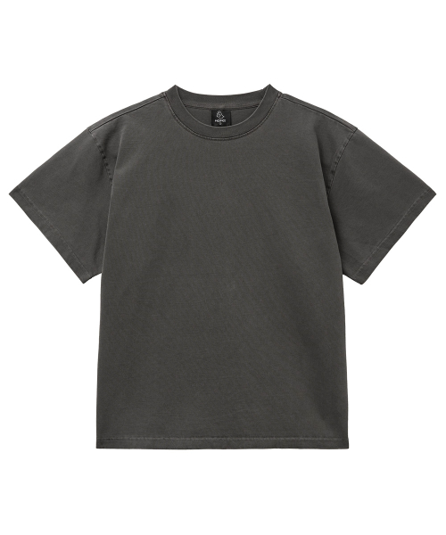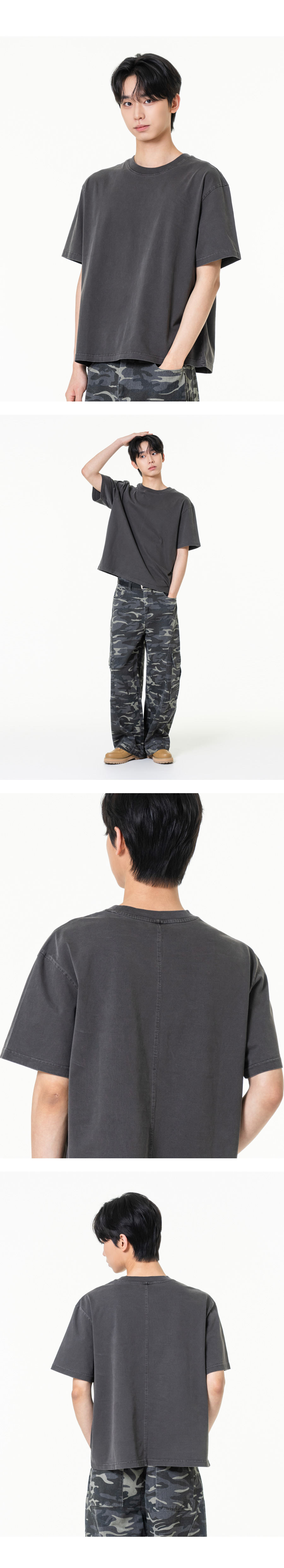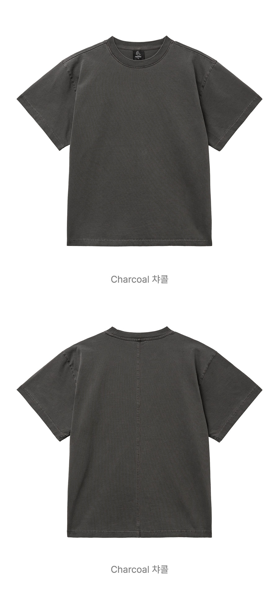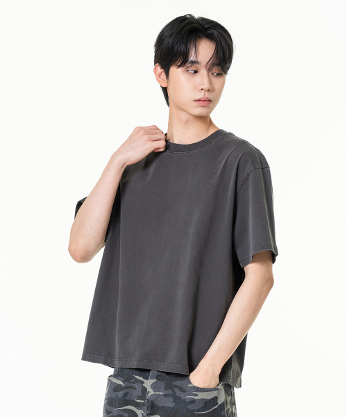 피그먼트 크롭 무지 뒷절개 반팔 티셔츠 챠콜