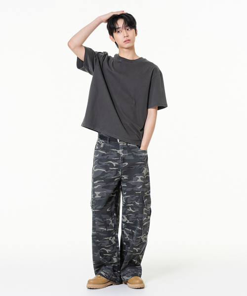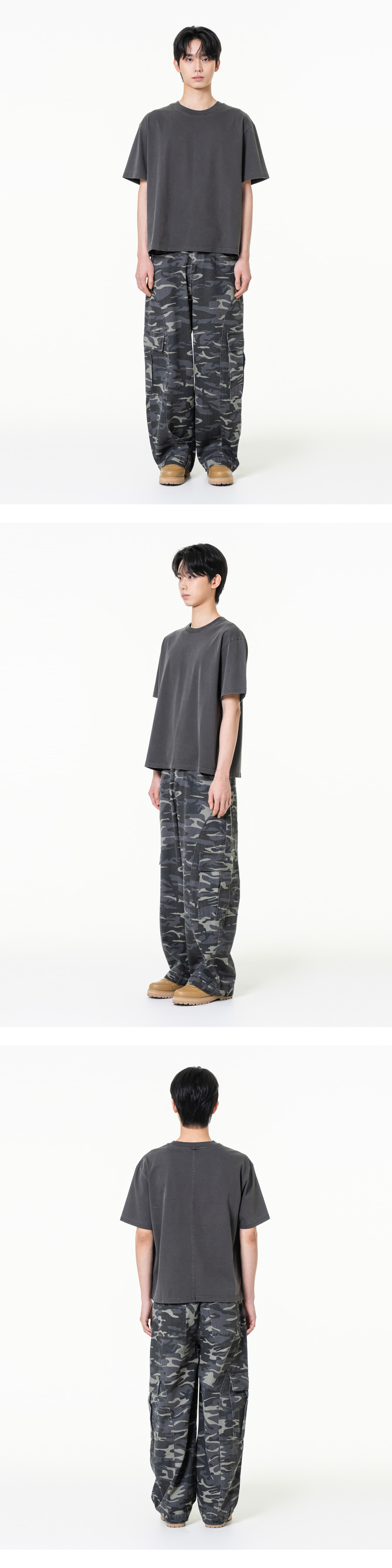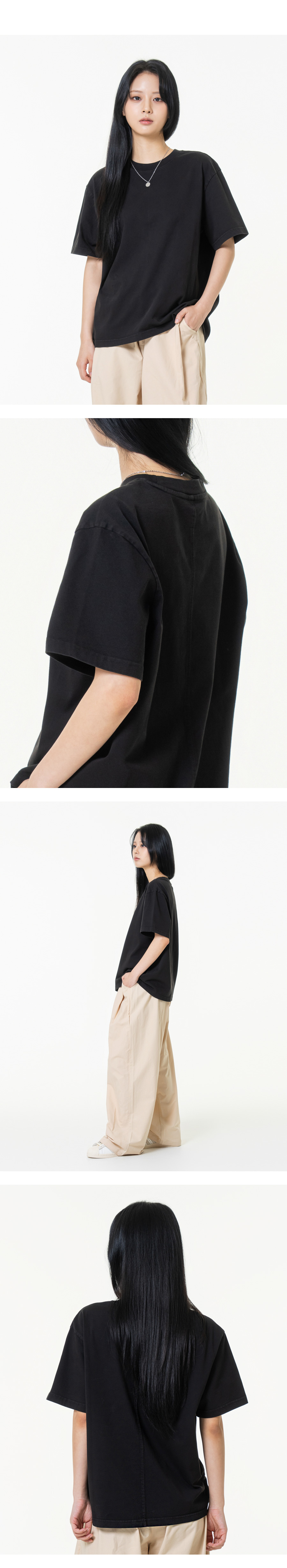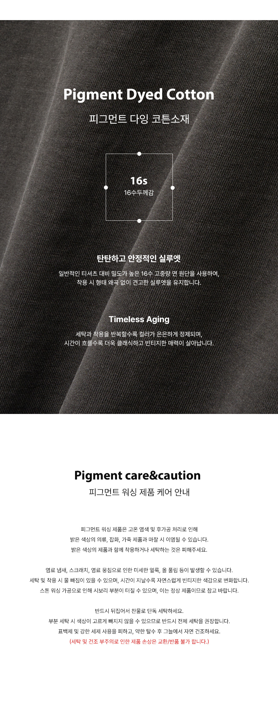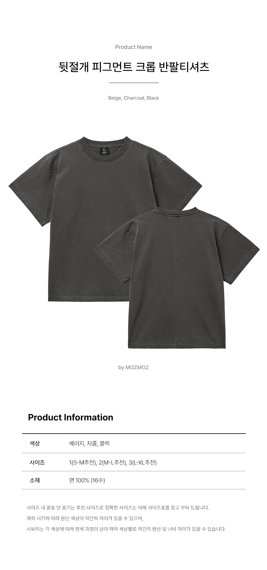 피그먼트 크롭 무지 뒷절개 반팔 티셔츠 챠콜