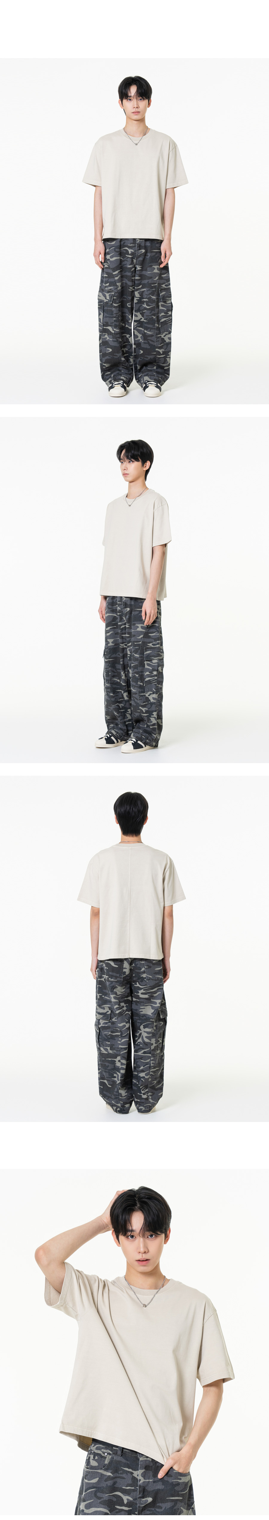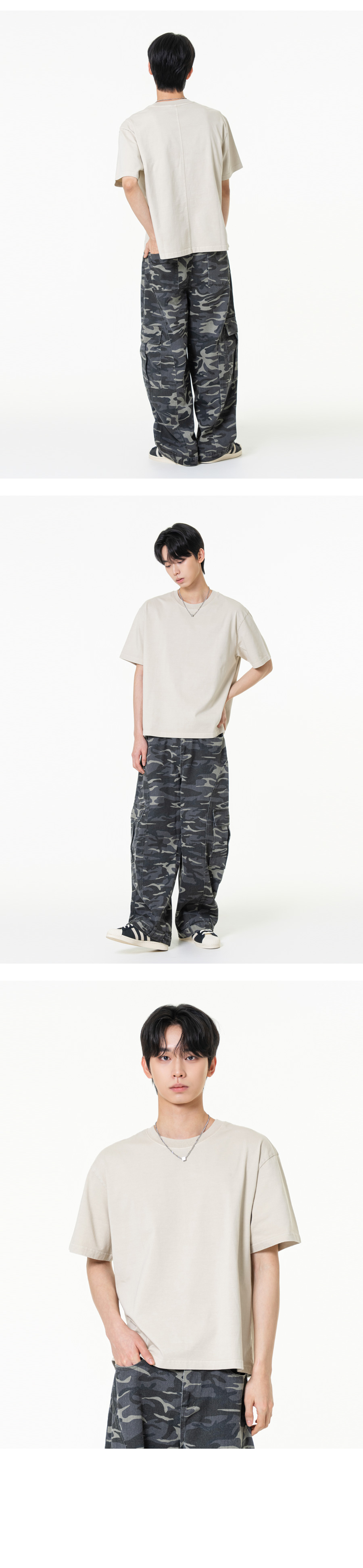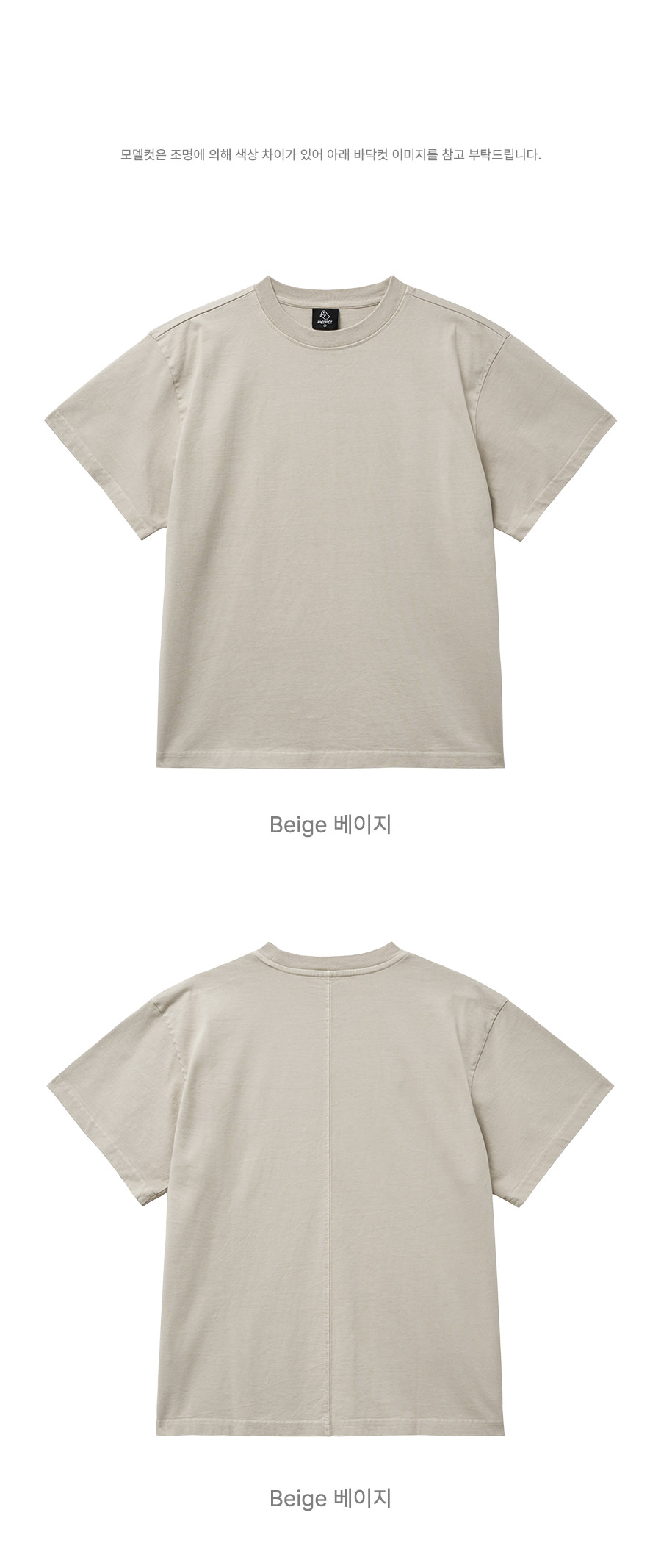 피그먼트 크롭 무지 뒷절개 반팔 티셔츠 베이지