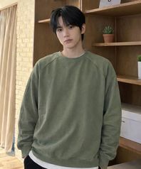 헤비 웨이트 피그먼트 나그랑 뒷절개 오버핏 맨투맨 카키