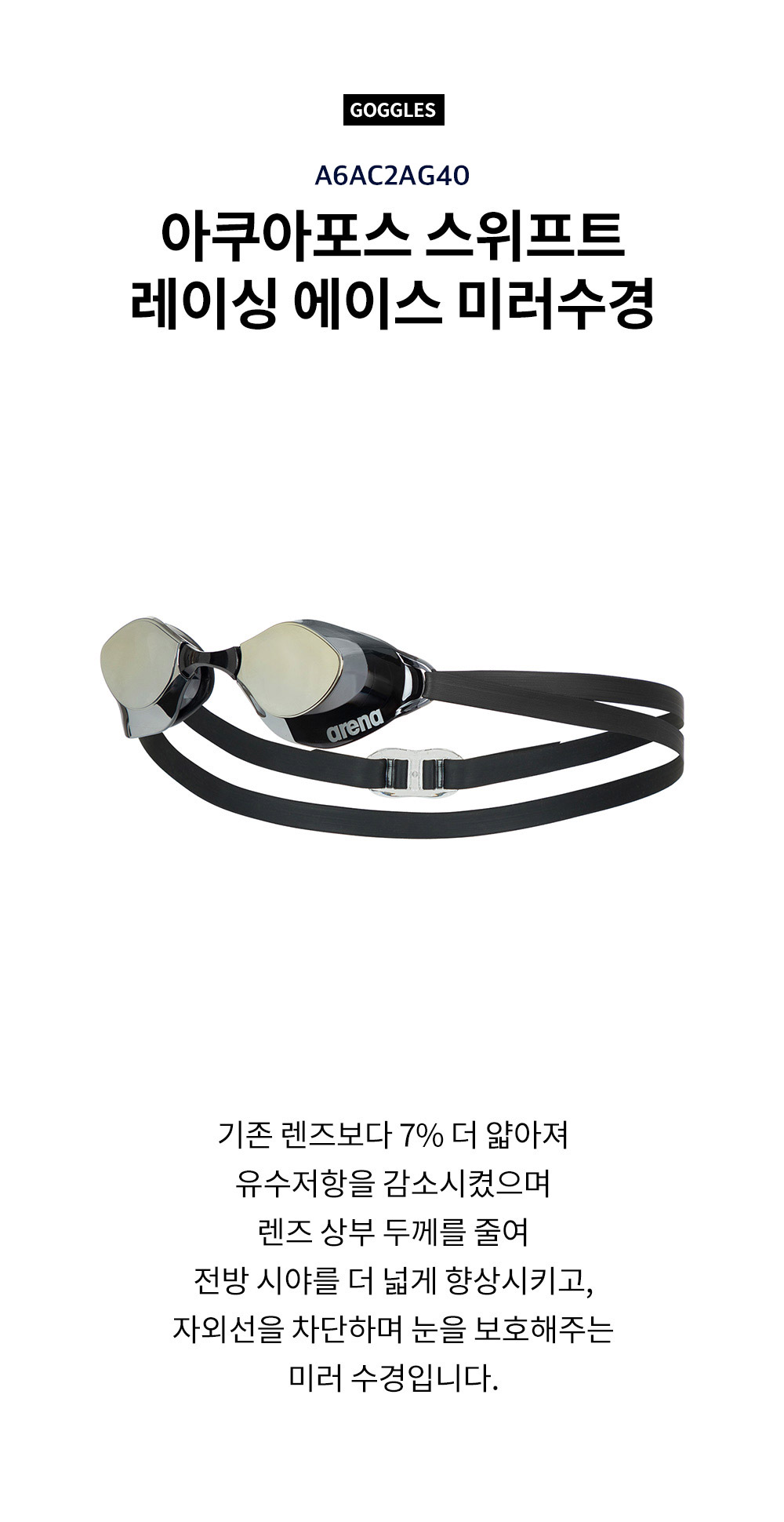아쿠아포스 스위프트 레이싱 에이스 미러수경 A6AC2AG40BLK