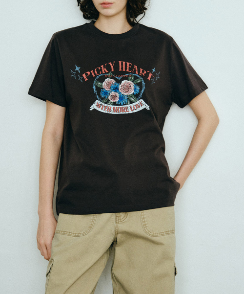 빈티지 로즈 반팔티_차콜