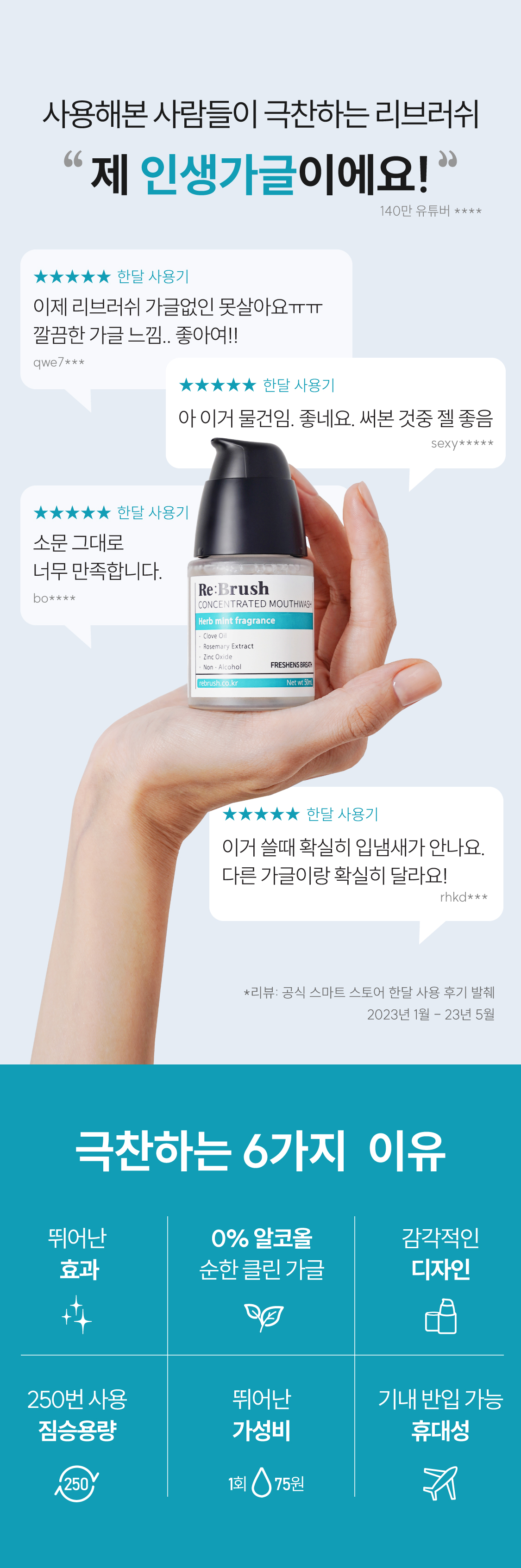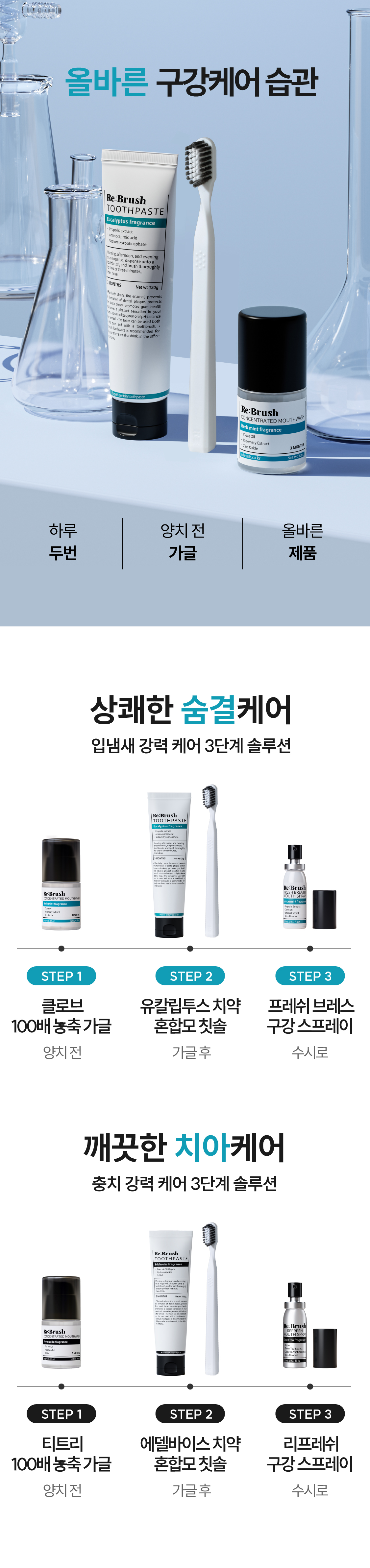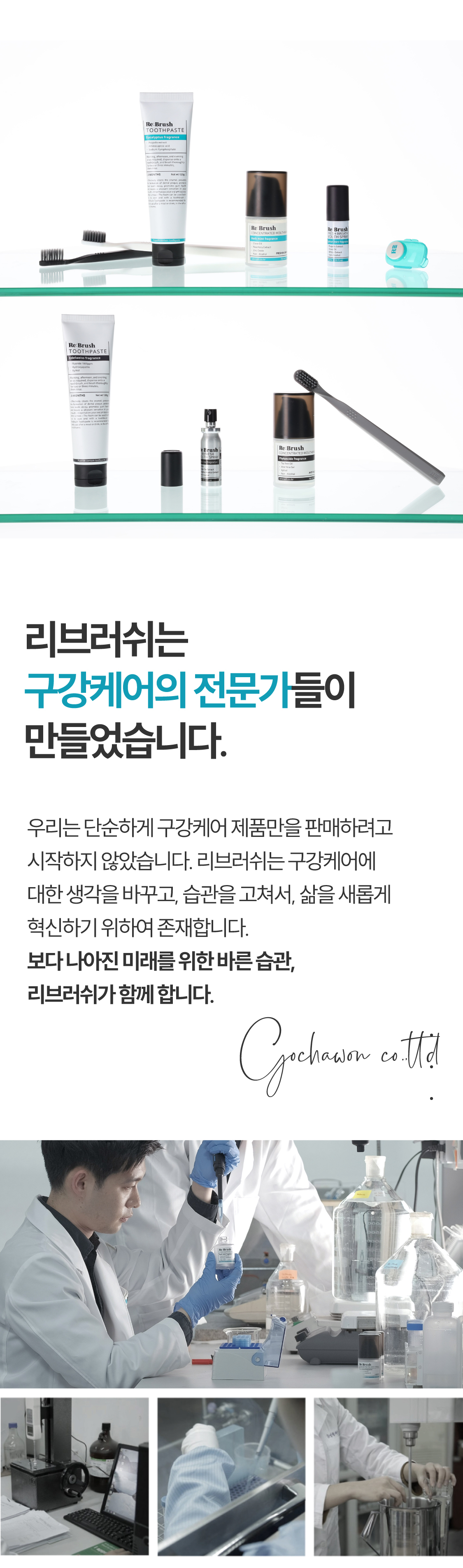 리브러쉬(REBRUSH)는 치과의사의 전문성을 바탕으로 구강케어의 핵심에 집중한 제품과 서비스로 건강한 구강관리 습관 형성을 돕는 프리미엄 구강케어 브랜드입니다.