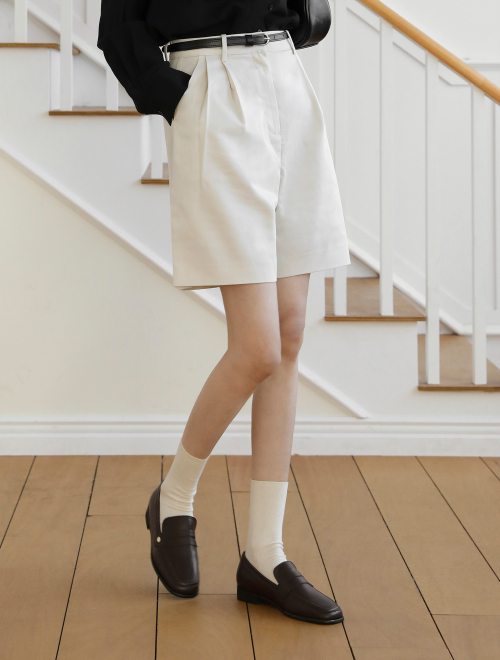 디테일 페니 스트랩 디자인에 자체 개발한 골드 로고 장식으로 디테일 포인트를 더하여 룩의 완성도를 높여줍니다.