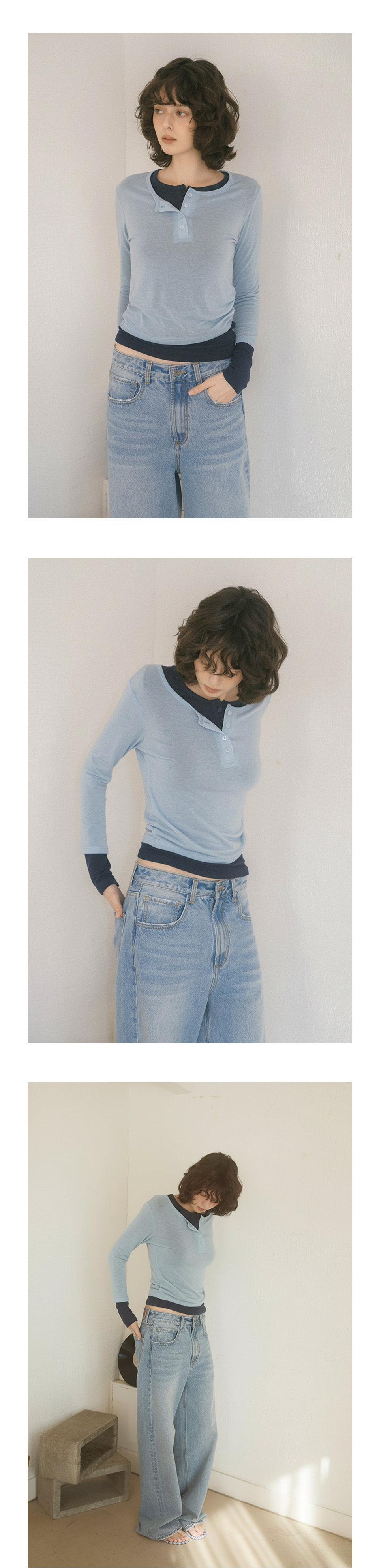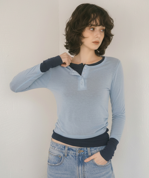 팬지 레이어드 3/4 슬리브_블루
