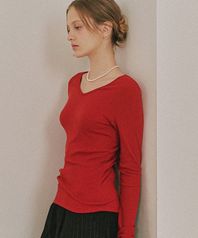 V NECK SLIM LONG SLEEVE RED